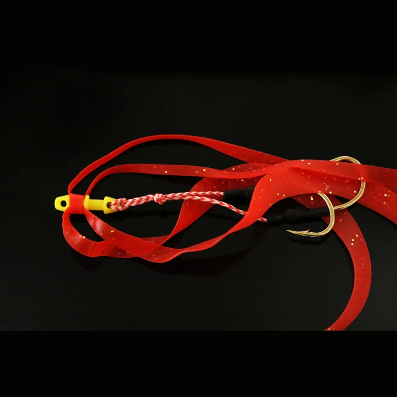 Bimoo 20/50 Uds faldas de camuflaje y lazo de goma piezas fijas para camuflaje rojo agua salada mar anzuelo de pesca plantilla cabeza señuelo Accesorios