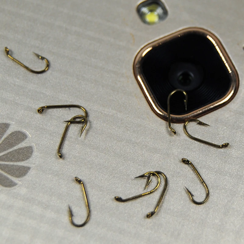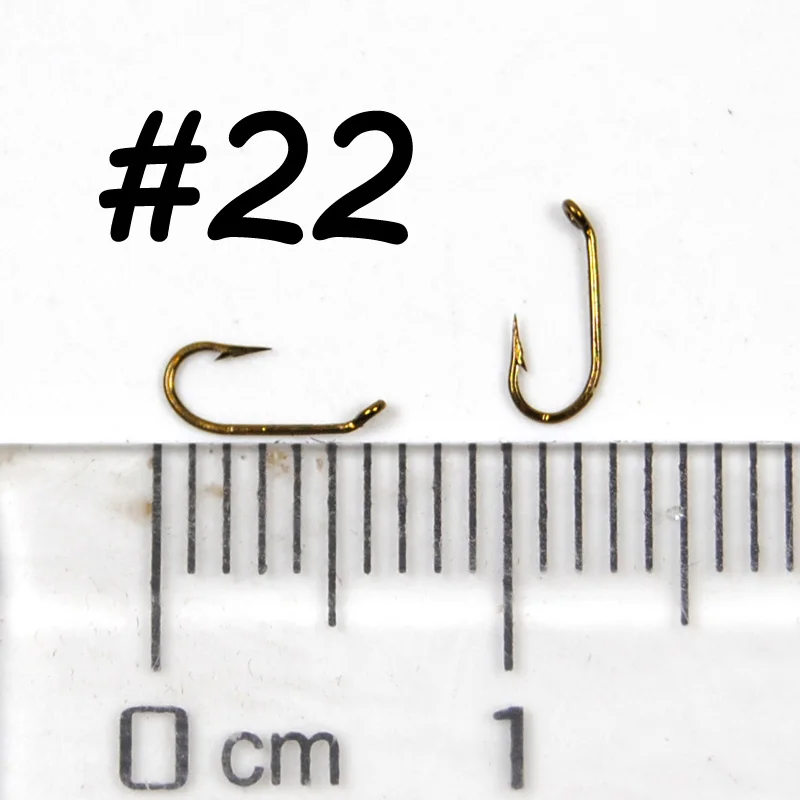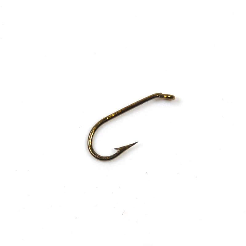 Ojo doblado forjado estándar, gancho clásico de mosca seca, acabado bronceado.
