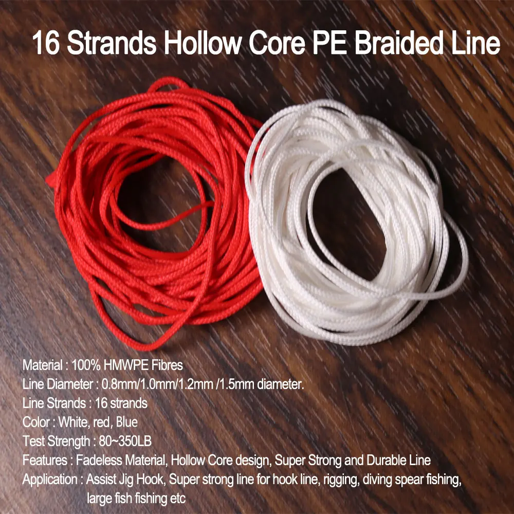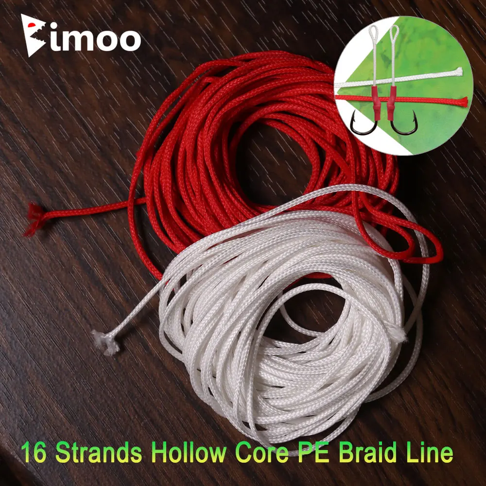 Bimoo 5m/pack 16 Strands PE Braided Fishing Line Super Strong Hollow Core Rope for Jig Assist Hook Rigging Diving Spear Fishing