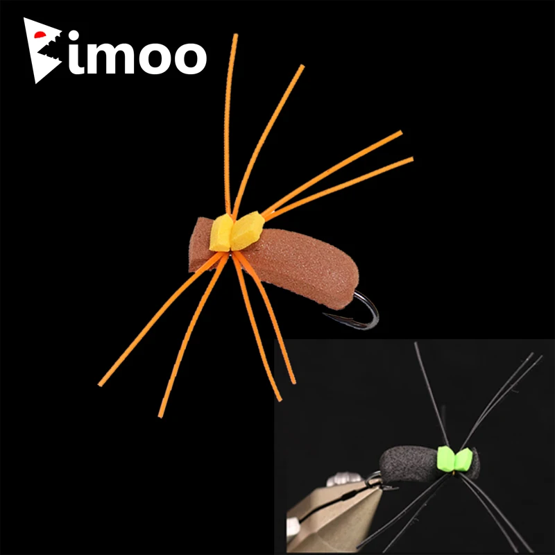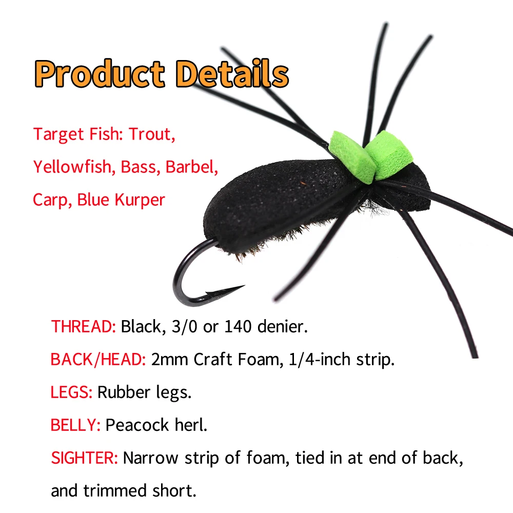 Bimoo 6 piezas 10# Cebo de espuma naranja y negra con forma de escarabajo, anzuelo seco para mosca, trucha, pez amarillo, lubina, Barbel, señuelo Artificial para pesca de carpa