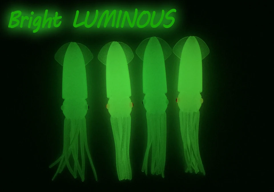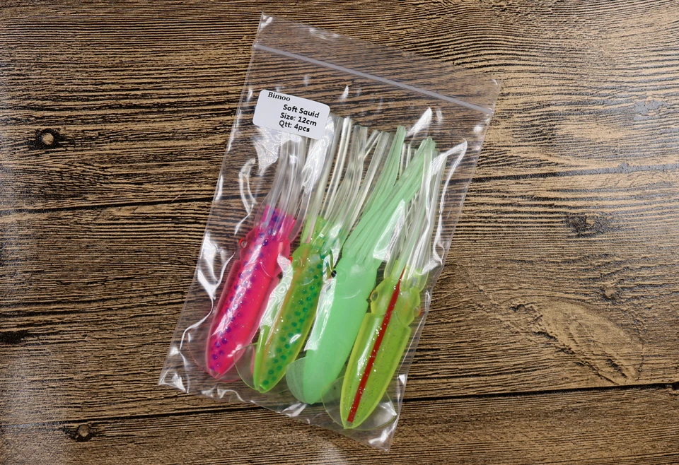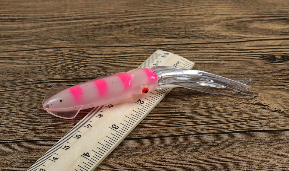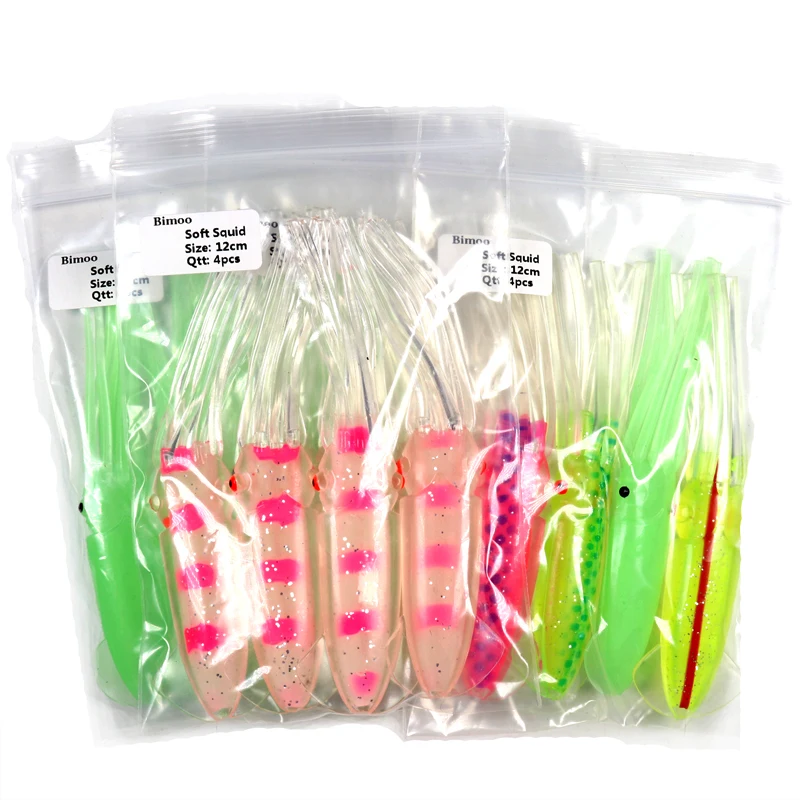 Bimoo-Señuelos de calamar suaves, cebo de pesca de agua salada, pulpo luminoso, rosa claro, para aparejos DIY, 1 bolsa=4 de 12cm, 12cm