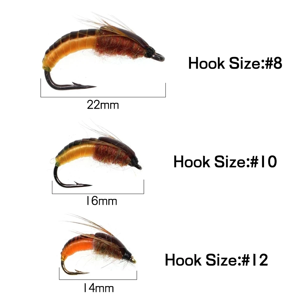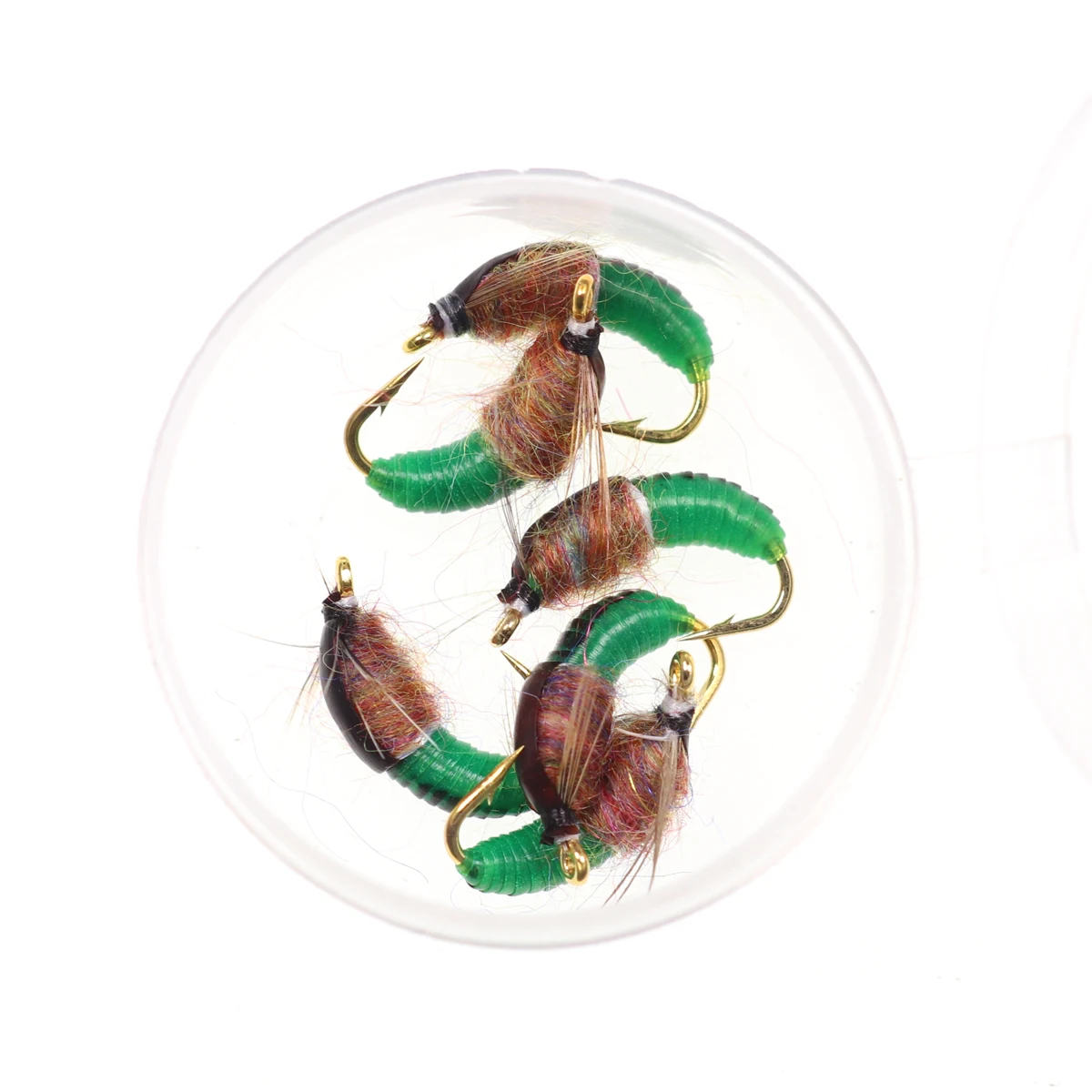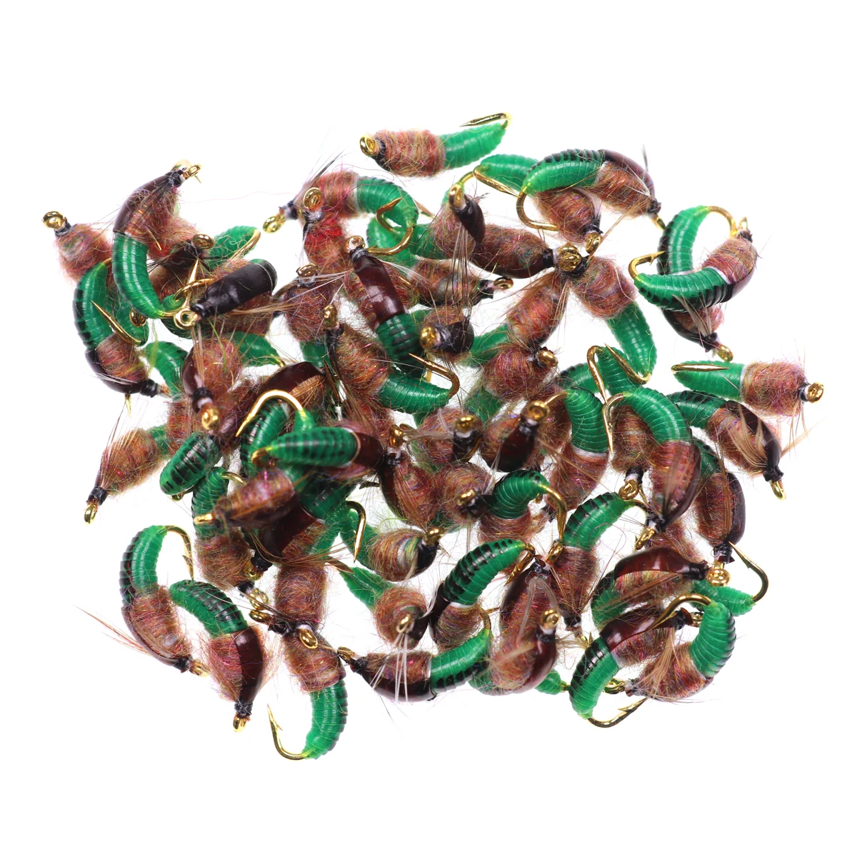 Bimoo Señuelo de Insectos Artificiales, Cebo Realista para Pescar Trucha, Ninfa, Ninfa, Naranja y Blanco, 6, 8, 10, 12, Color Verde