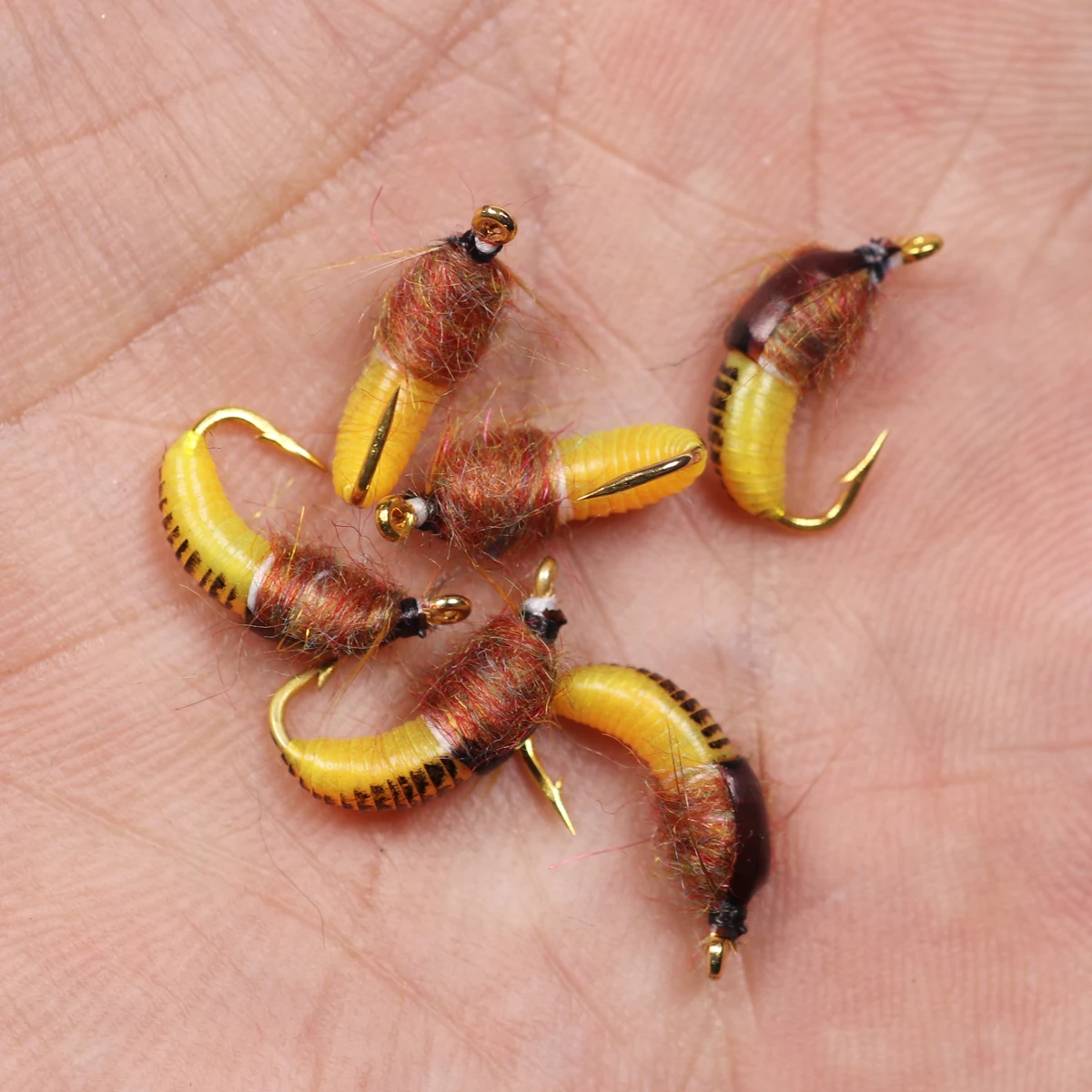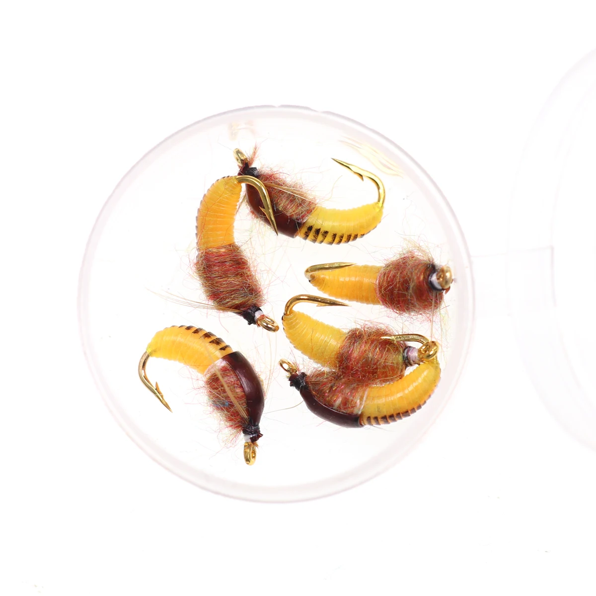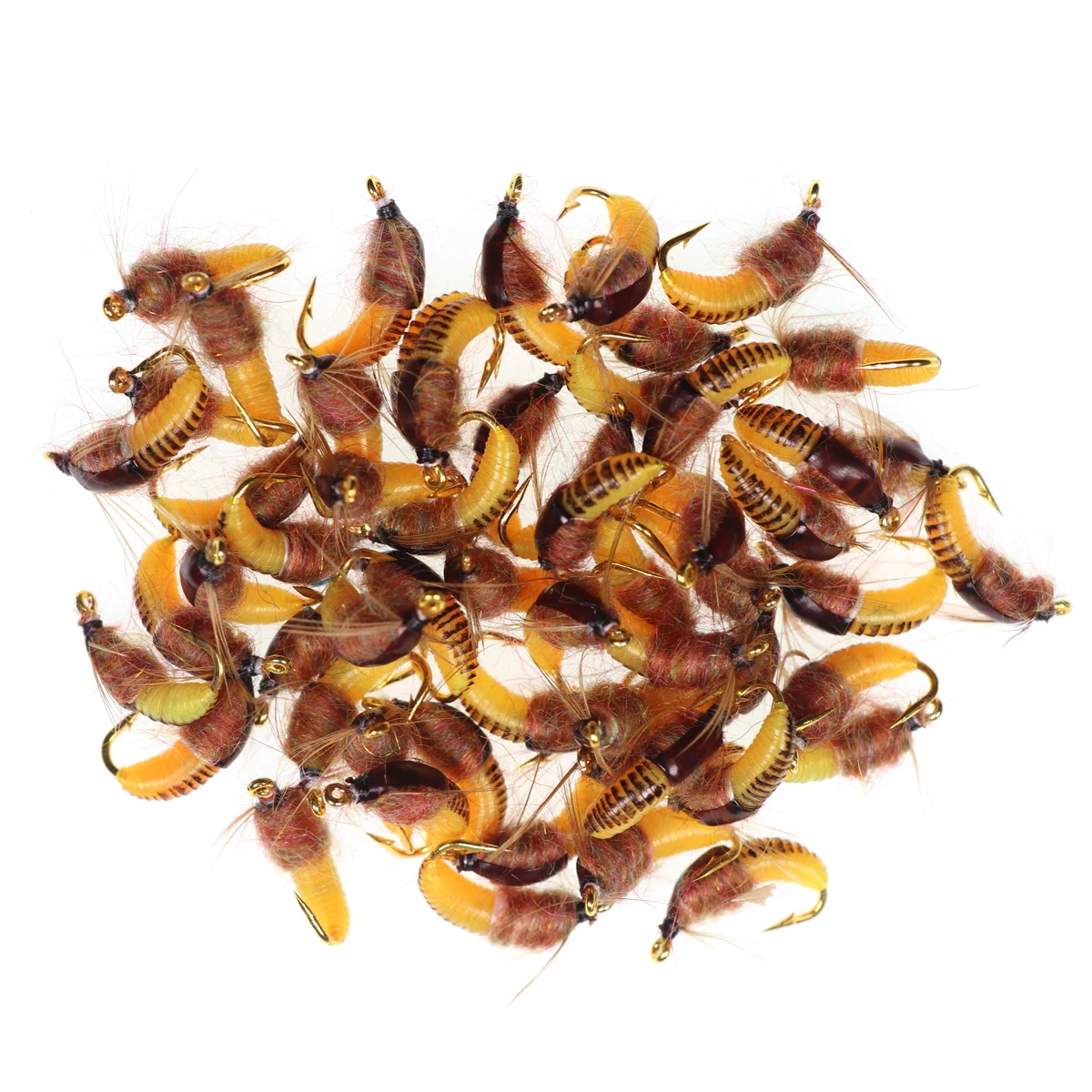 Bimoo Señuelo de Insectos Artificiales, Cebo Realista para Pescar Trucha, Ninfa, Ninfa, Naranja y Blanco, 6, 8, 10, 12, Color Verde