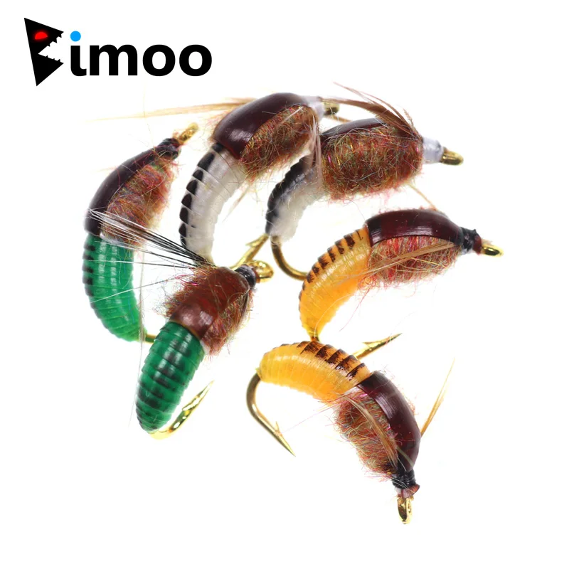 Bimoo Señuelo de Insectos Artificiales, Cebo Realista para Pescar Trucha, Ninfa, Ninfa, Naranja y Blanco, 6, 8, 10, 12, Color Verde