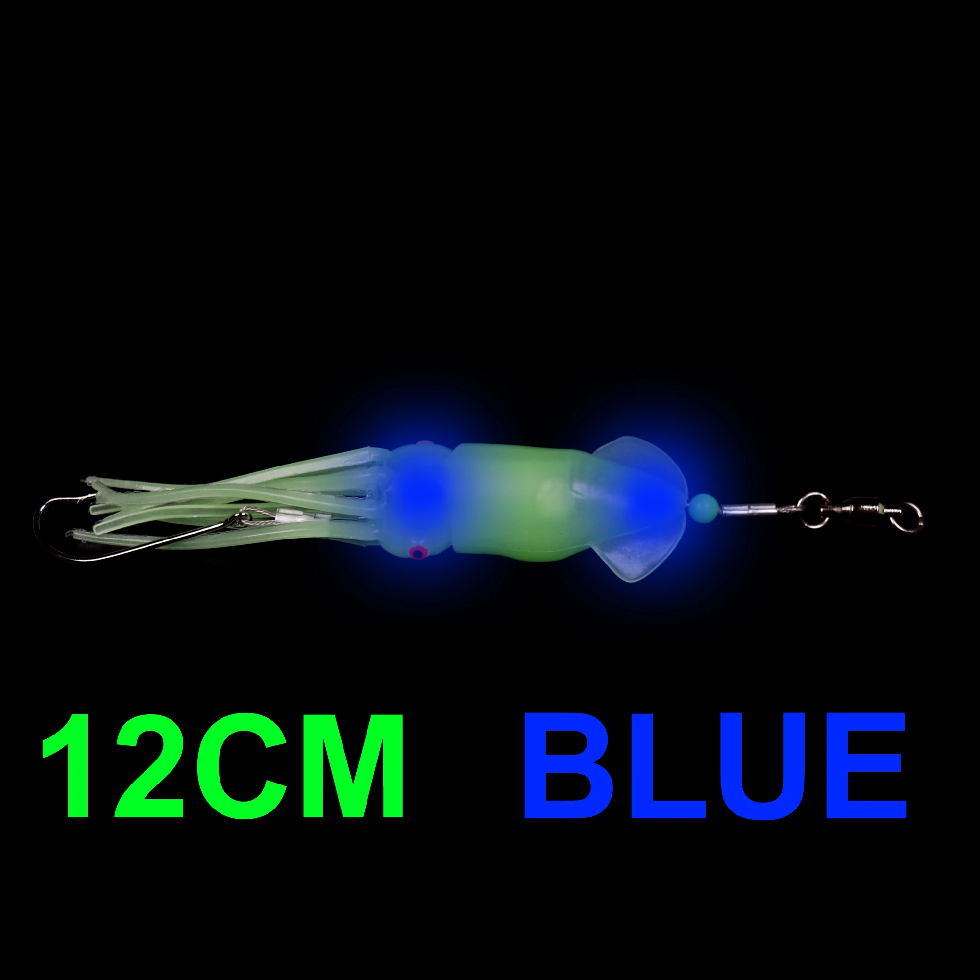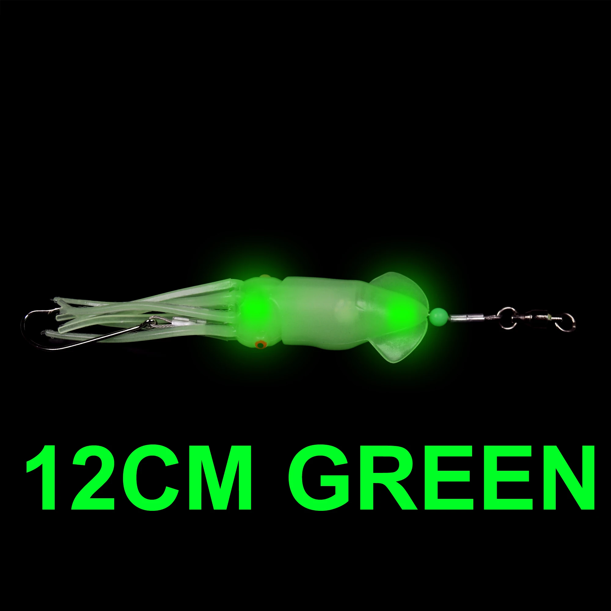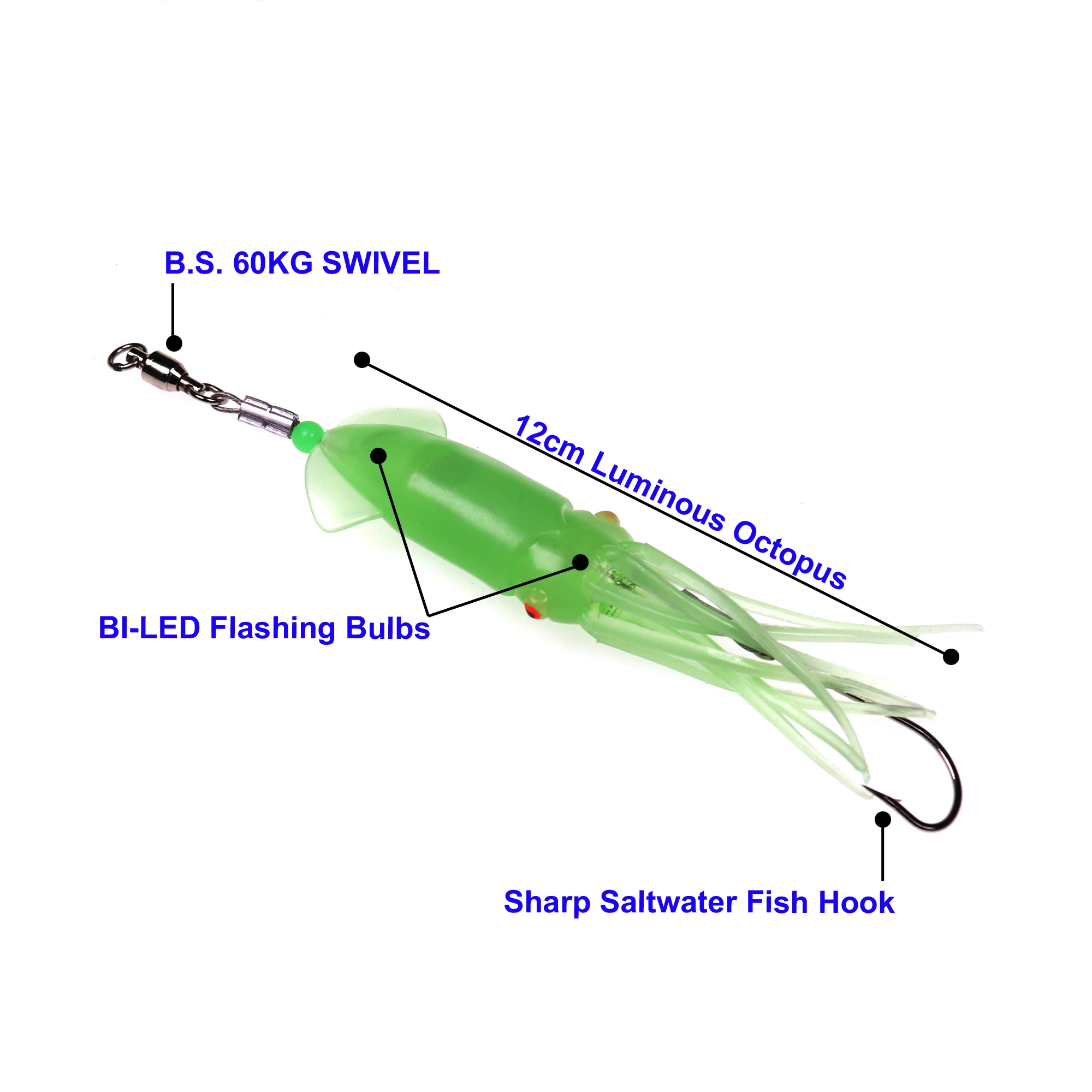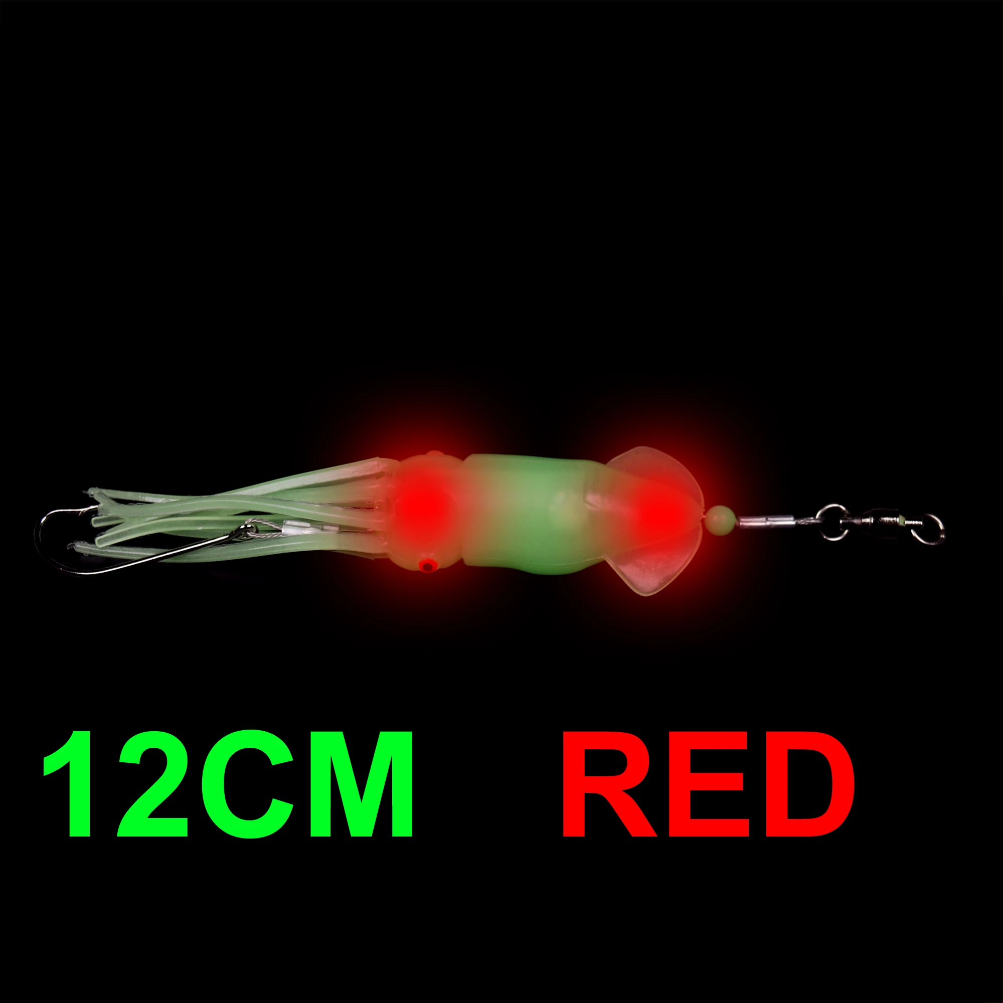 Bimoo-Señuelo luminoso de pesca de agua salada, luz LED, doble tentación, 12cm, cebo de Pesca de Mar suave con anzuelo, blanco, rojo, etc.