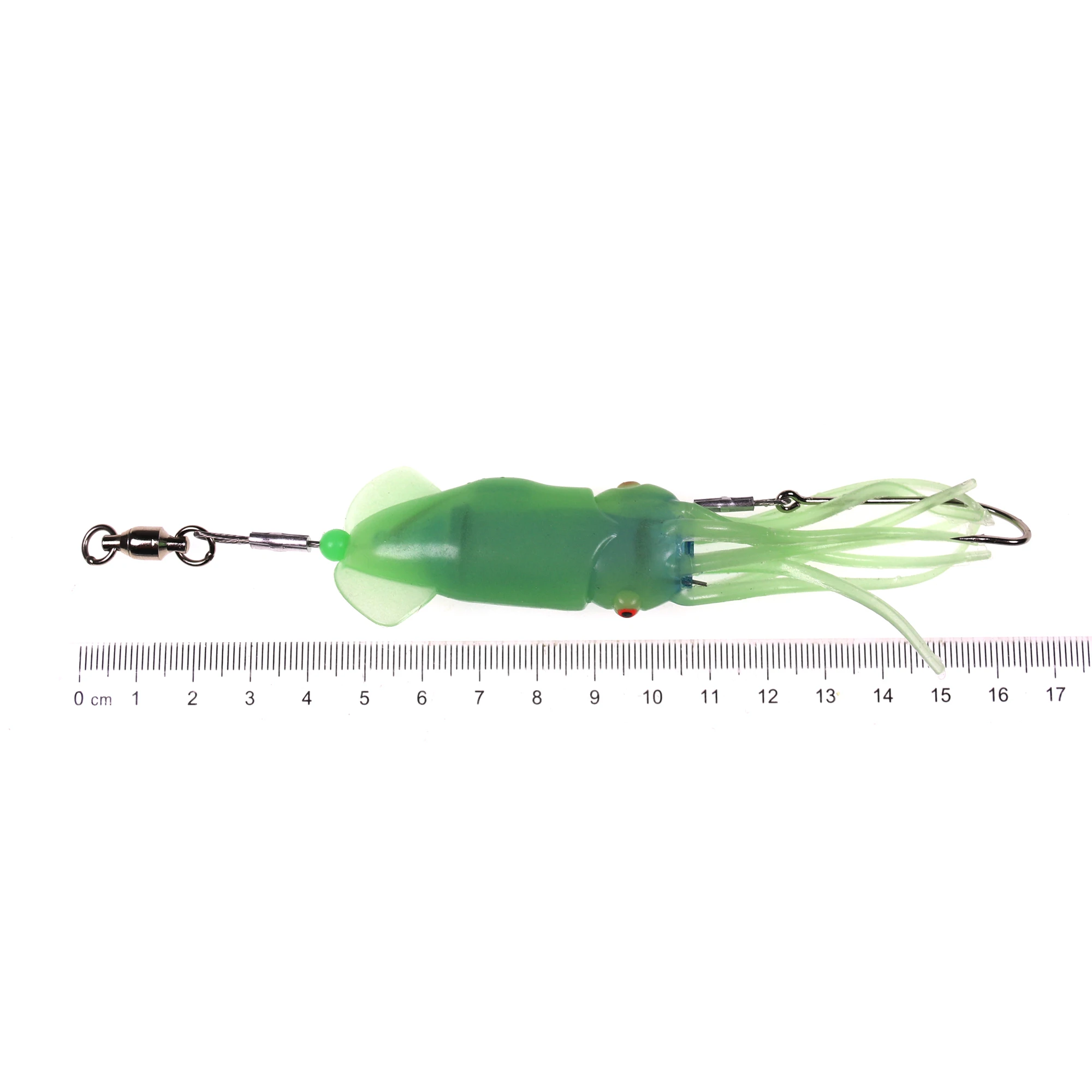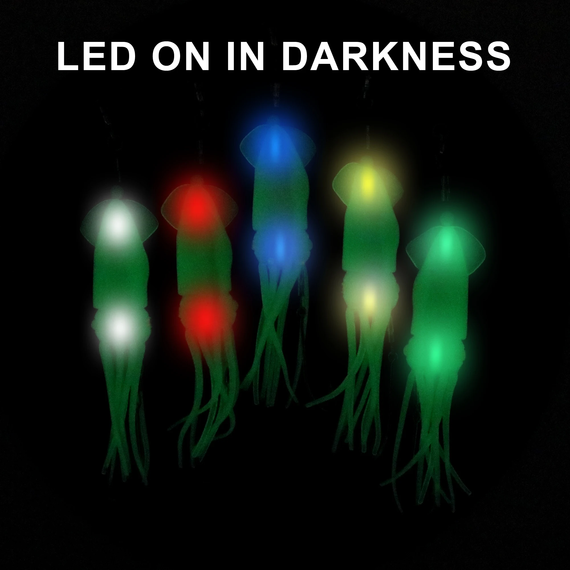 Doble tentación: luz LED incorporada y piel noctilucente. El LED se iluminará automáticamente tan pronto como golpee el agua. La piel luminosa será más brillante después de cargarse bajo la luz.