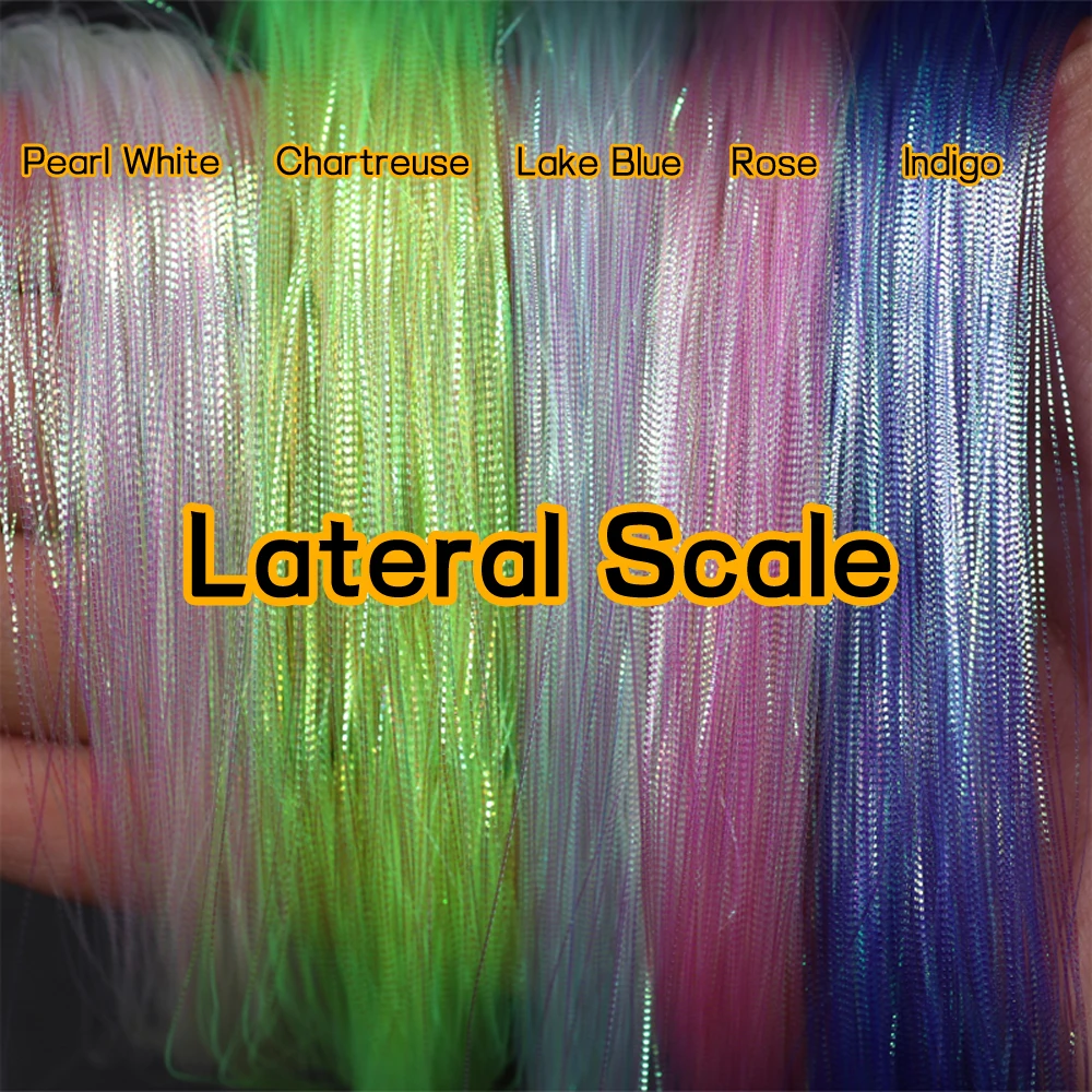 Bimoo 1 paquete 0,2mm atado de moscas escala lateral fina hebras agua salada Flashbou Bucktail Spinnerbait pesca señuelo cebo material de atado