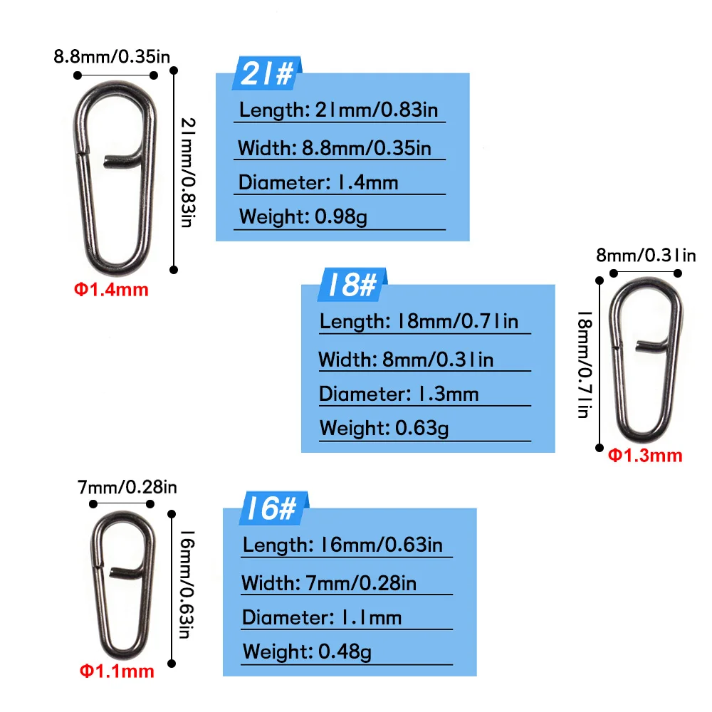 Características: clips a presión de cambio rápido, fácil de conectar y más conveniente. Material de acero inoxidable, se puede utilizar en agua salada. Diferentes tamaños, más opciones.