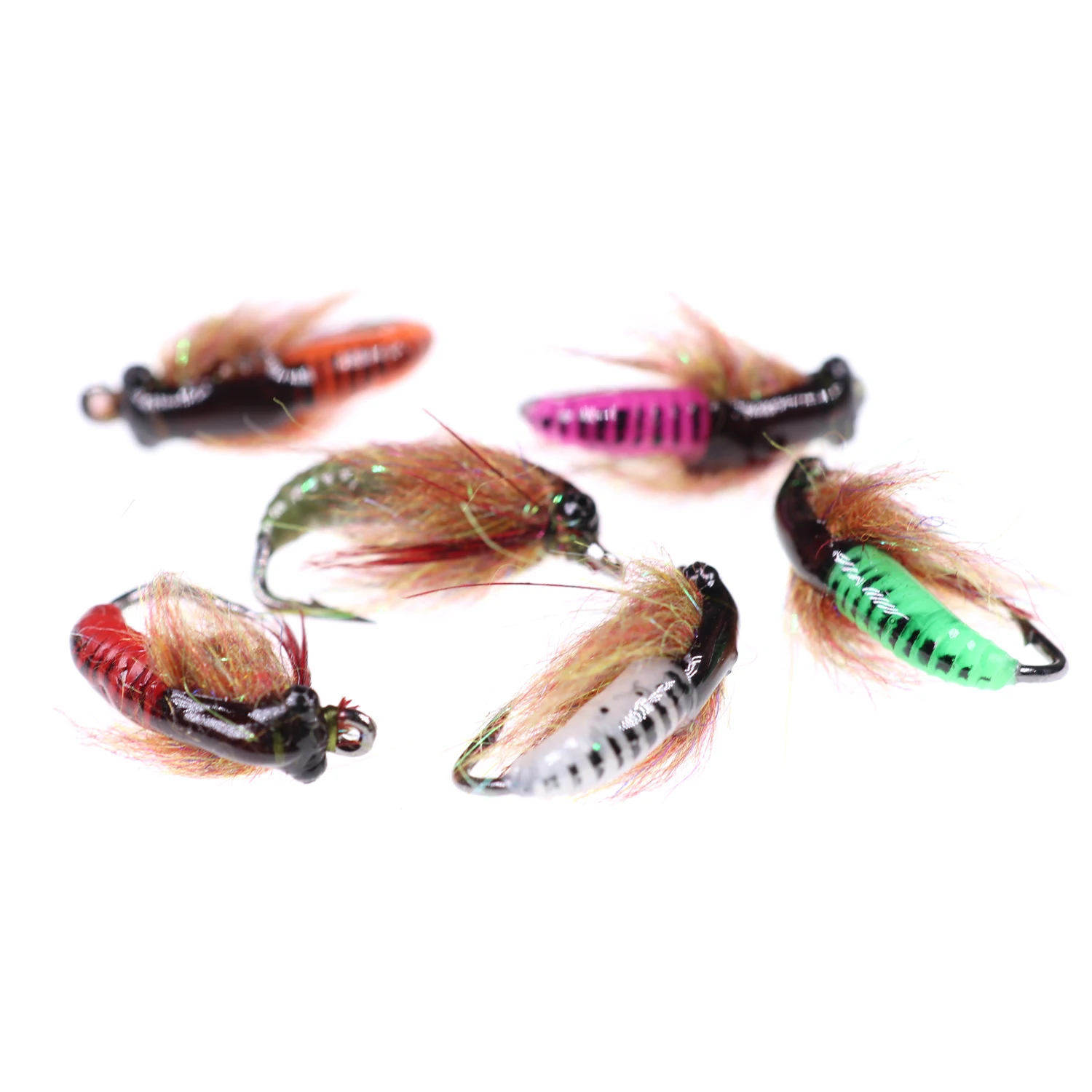 Bimoo 4PCS #6 Caddis Pupae Ninfa Mosca Trucha Grayling Steelhead Cebo de pesca Señuelo Pesca en hielo Anzuelo Cebos UV Beadhead Pupa