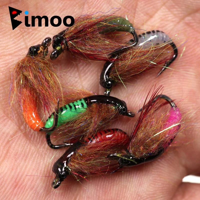 Bimoo 4PCS #6 Caddis Pupae Ninfa Mosca Trucha Grayling Steelhead Cebo de pesca Señuelo Pesca en hielo Anzuelo Cebos UV Beadhead Pupa