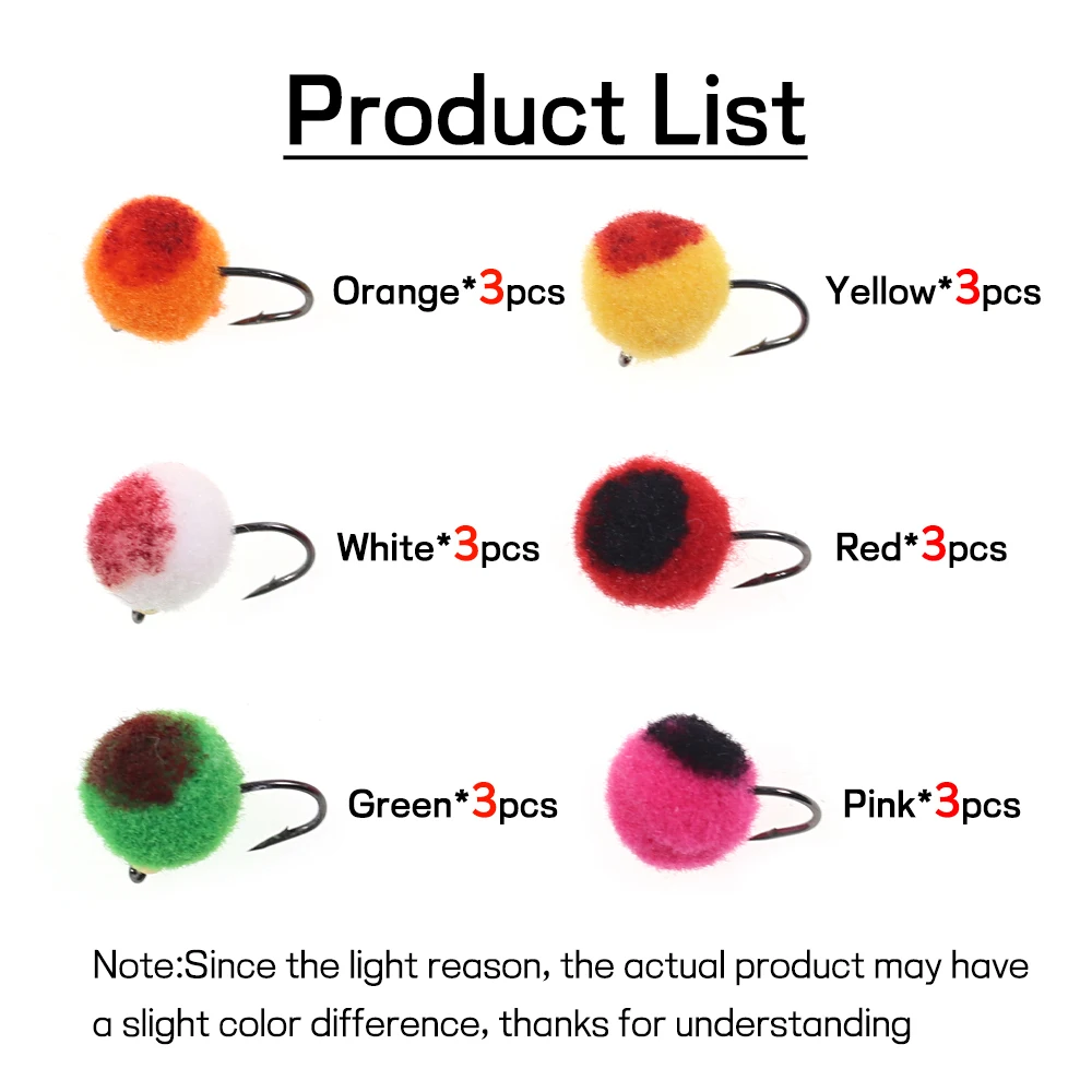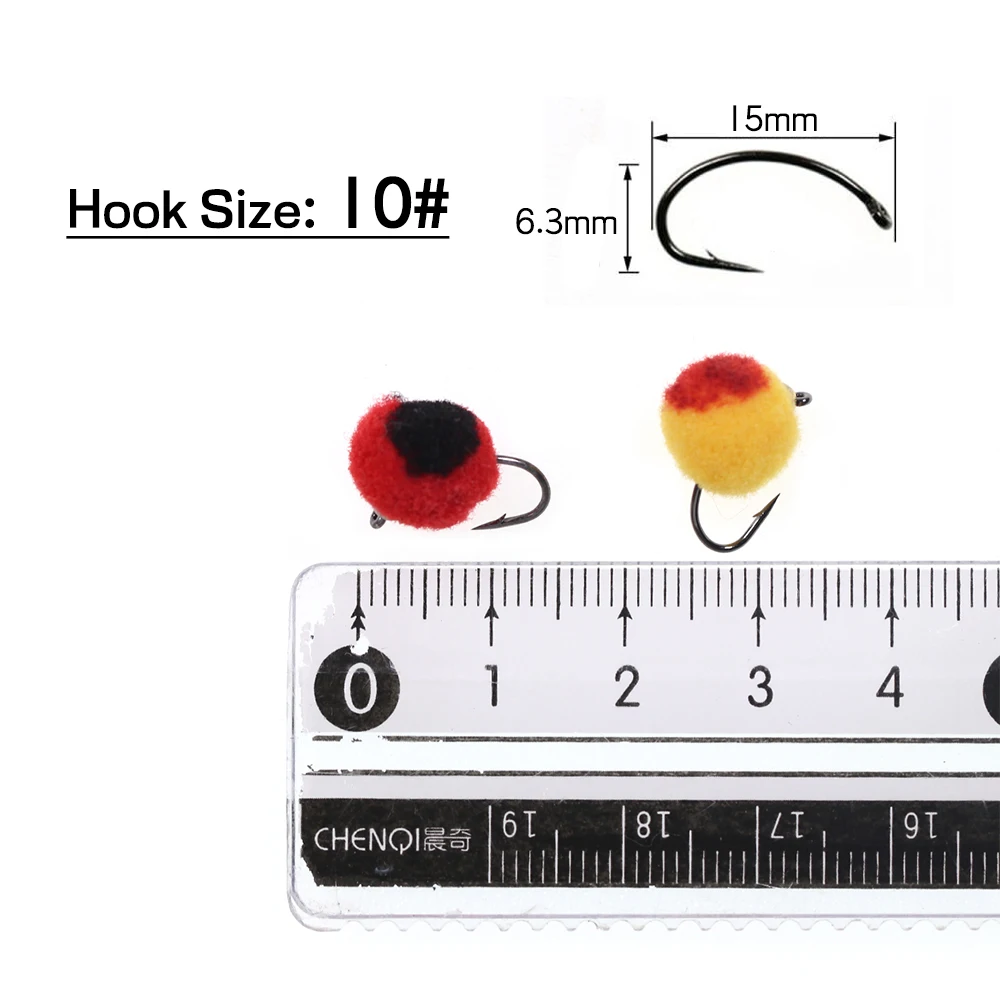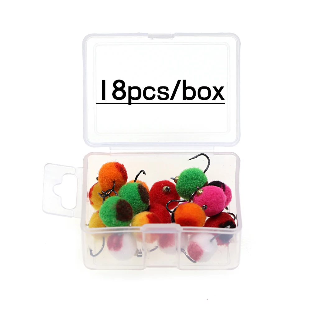 Bimoo 18 unids/caja cabeza de grano de latón de varios colores huevo mosca #10 anzuelo trucha gris salmón Cabeza de Acero señuelo de pesca