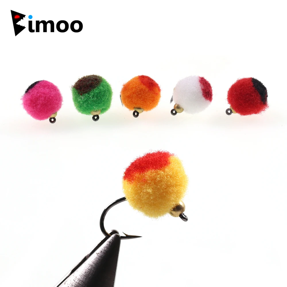 Bimoo 18 unids/caja cabeza de grano de latón de varios colores huevo mosca #10 anzuelo trucha gris salmón Cabeza de Acero señuelo de pesca