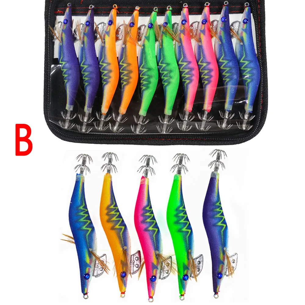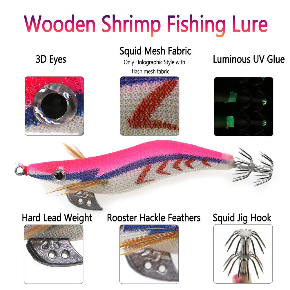 Anzuelo de pesca de calamar Bimoo, señuelo de pesca de camarón de madera, anzuelo de pulpo, Sedal Artificial, Señuelos de Pesca con cebo duro