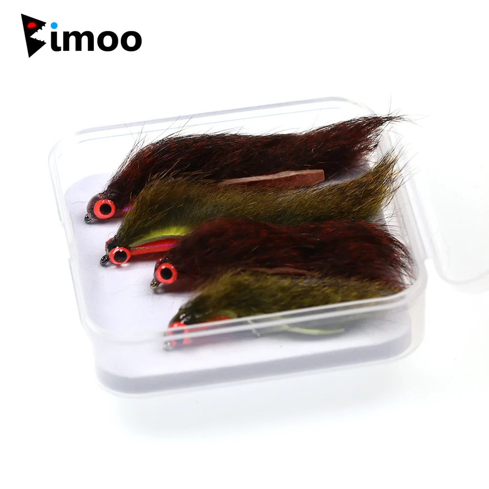 Bimoo 4PCS #6 #8 Olive/Red-Brown Squirrel Strip Zonker Fly Streamers con 3D Luminous Eye Trucha Pike Bass Señuelo de pesca Cebo
