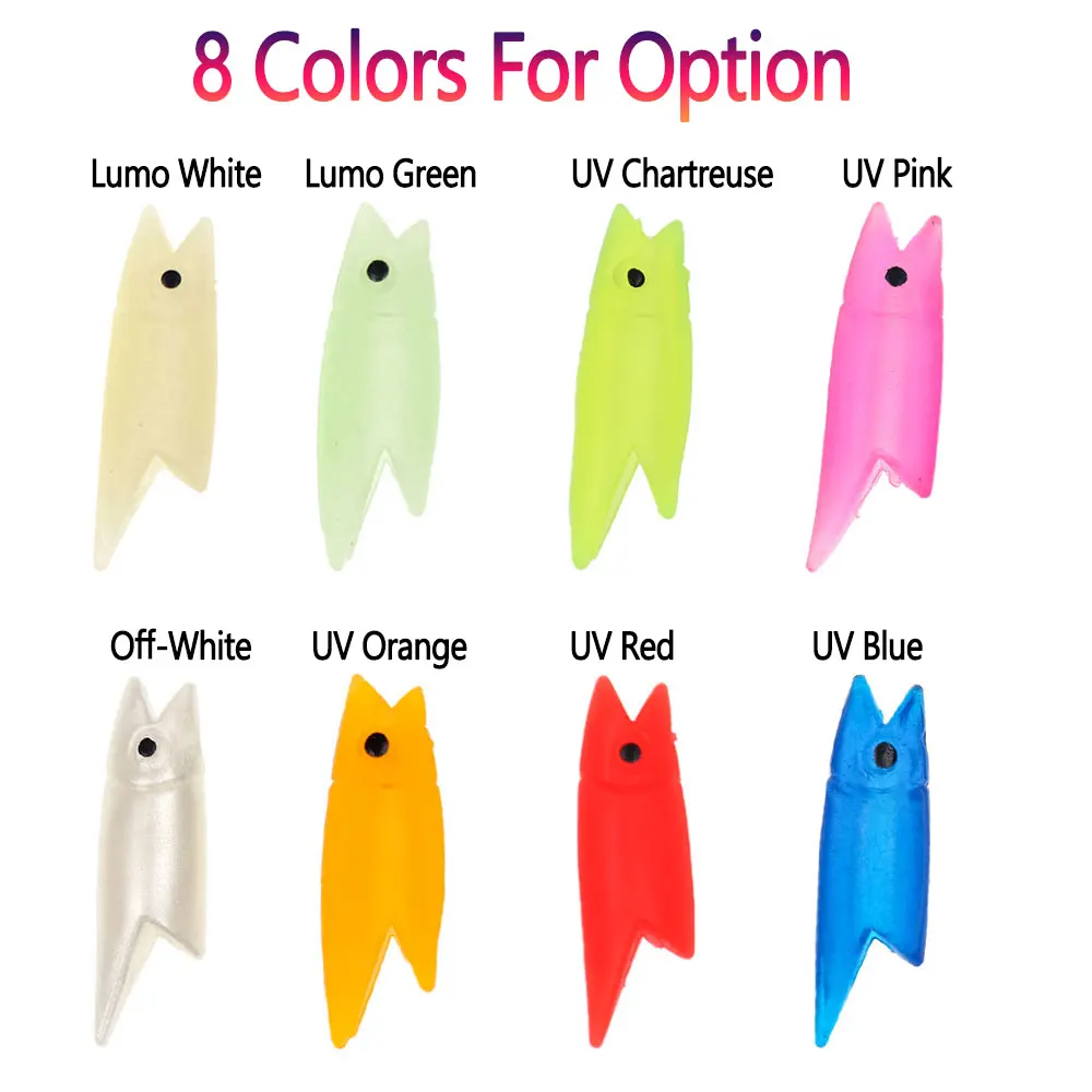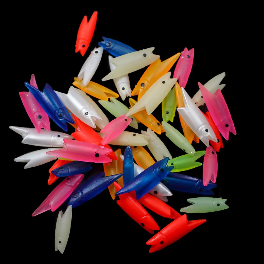 Bimoo 100 Uds 2cm 3cm cabeza de pez de silicona luminosa DIY Sabiki Rig Material señuelo de pesca de mar cebo para Makerel aparejos de pesca blancos