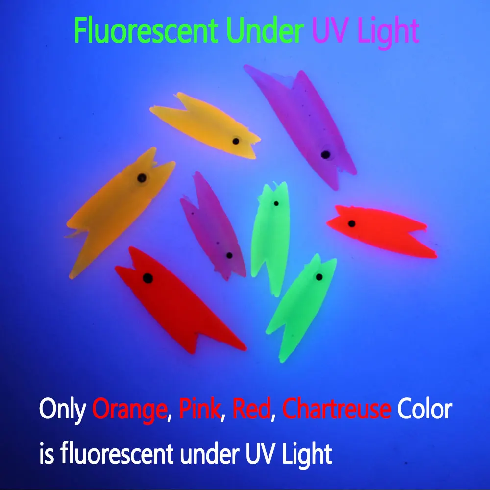 Fluorescente bajo luz UV Color: Rosa UV, rojo UV, naranja UV, Chartreuse UV