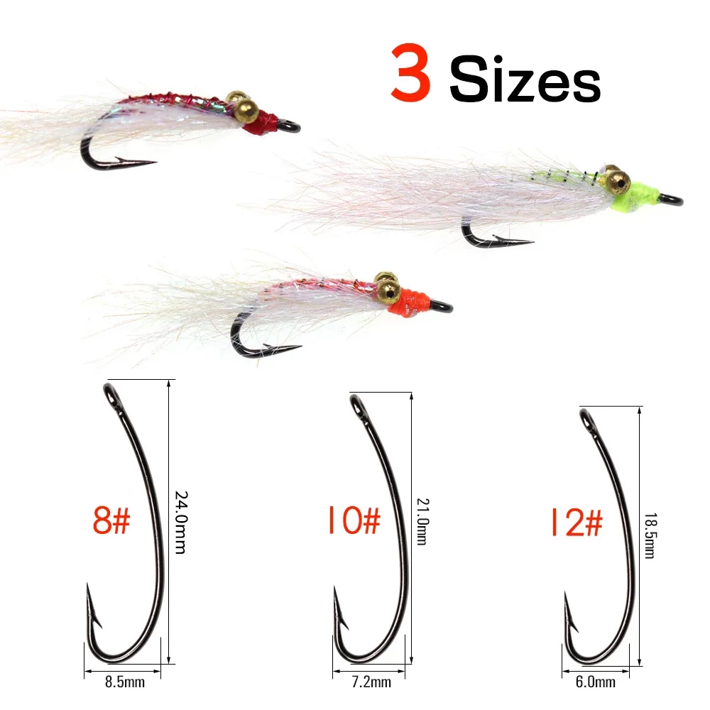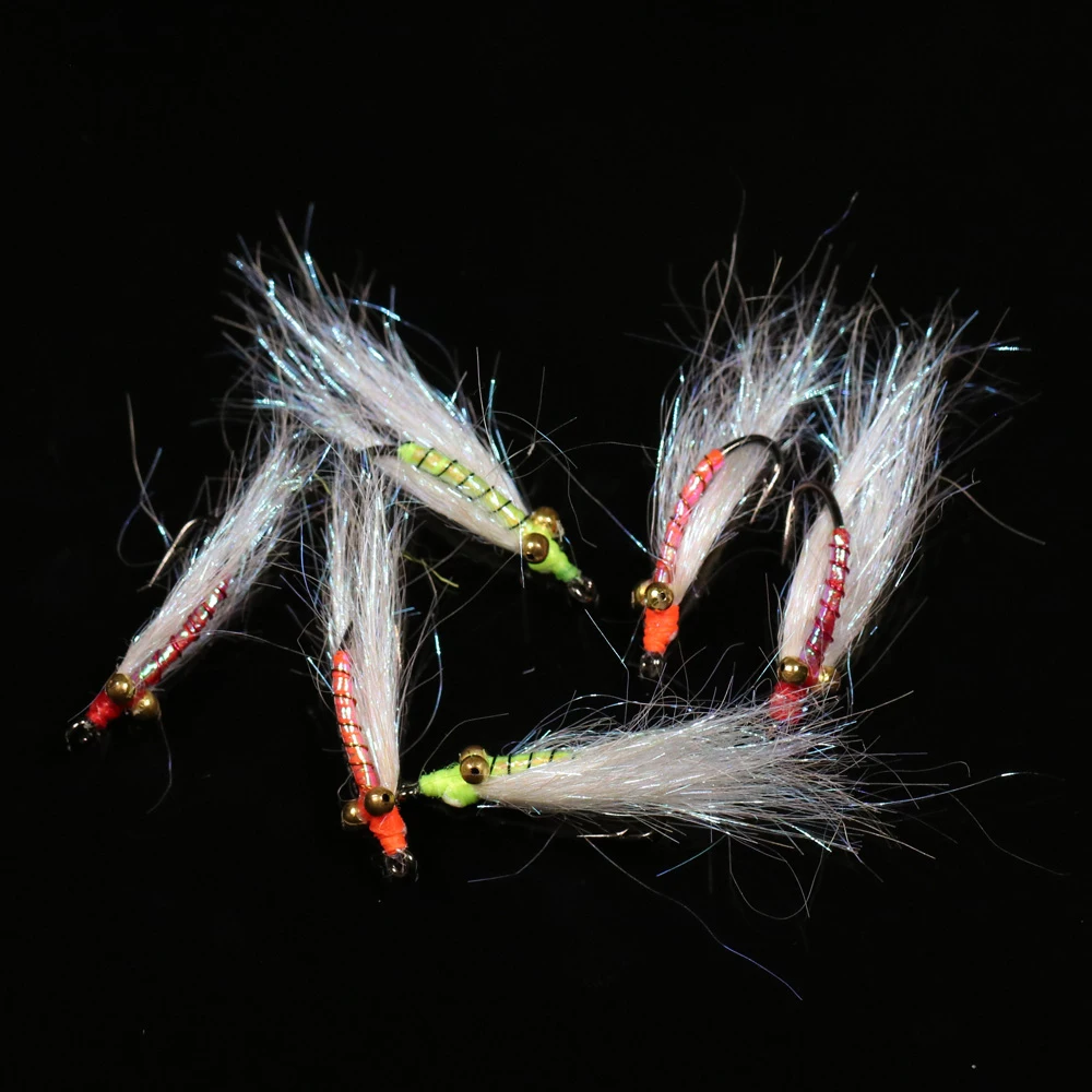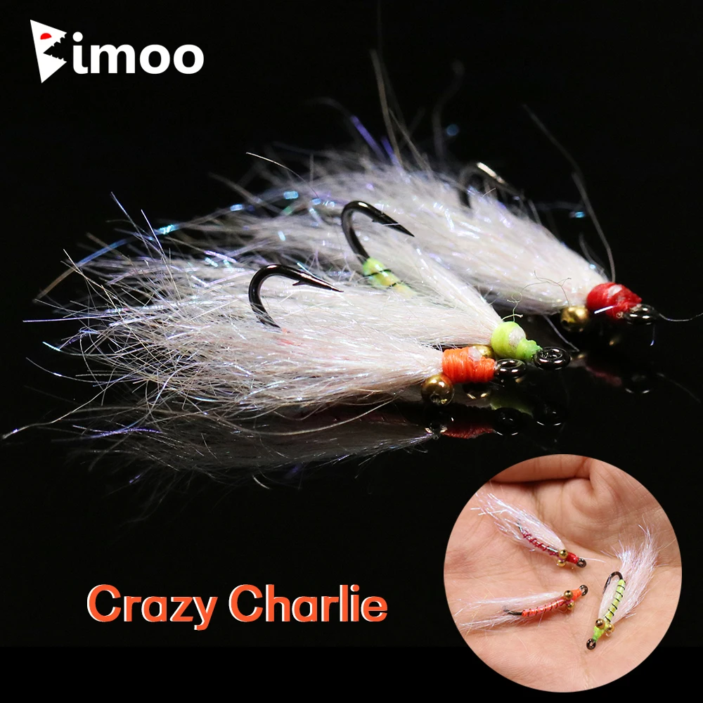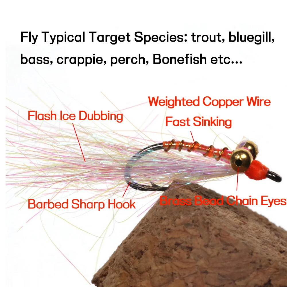 Bimoo 6PCS 8# 10# 12# Crazy Charlie Ice Dubbing Nymph Flies Barbed Hook Fast Sinking Fly Fishing Lure Bait UV Green Orange Red