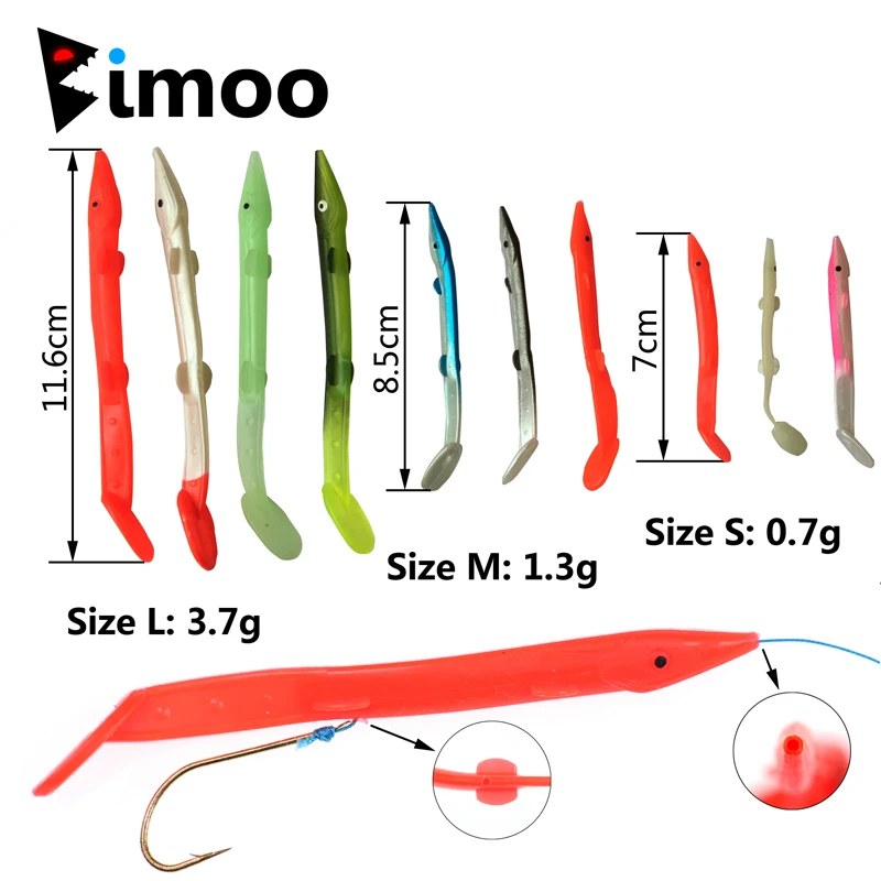 Bimoo-Señuelo de plástico blando con ojo para pesca en agua salada, cebo pequeño de Anguila con ojo, color blanco, verde y rojo