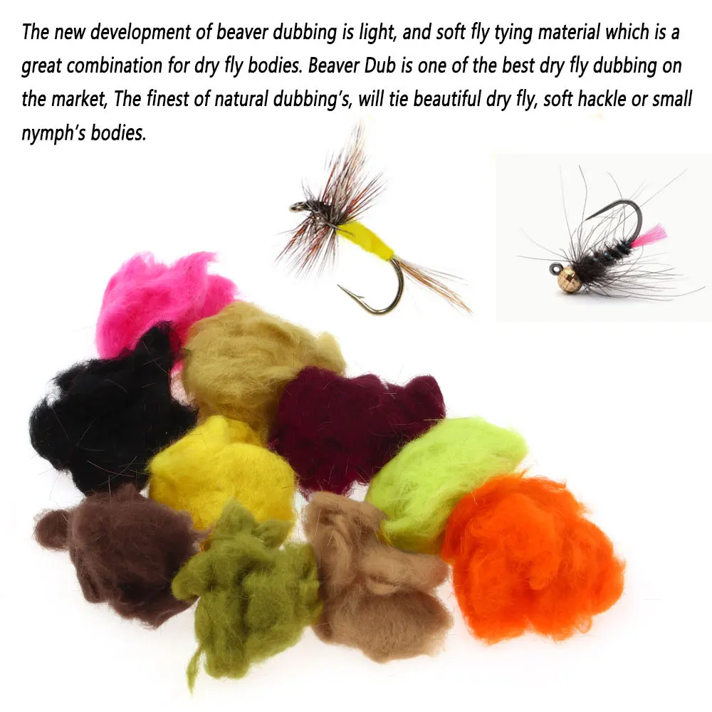 El nuevo desarrollo del doblaje del castor es un material ligero y suave para atar moscas, que es una excelente combinación para cuerpos de moscas secas.El Dub de Beaver es uno de los mejores dobles para moscas secas del mercado. El más fino de las dobles naturales, atará hermosas moscas secas, hackle suave o cuerpos de la ninfa pequeña.