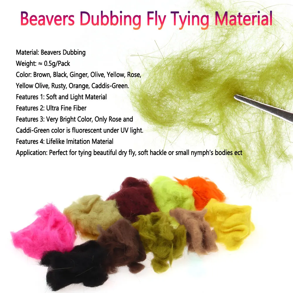Bimoo 1-5 paquete 0,5 g/paquete de material para atar moscas con doblaje de castor suave para atar moscas secas, mosca Adams, señuelo de pesca de trucha corporal de Ninfa húmeda, cebos