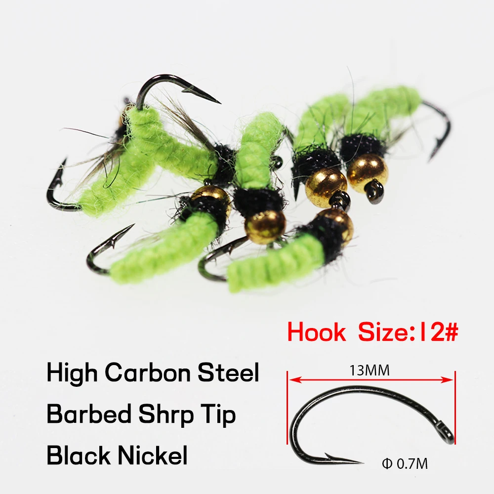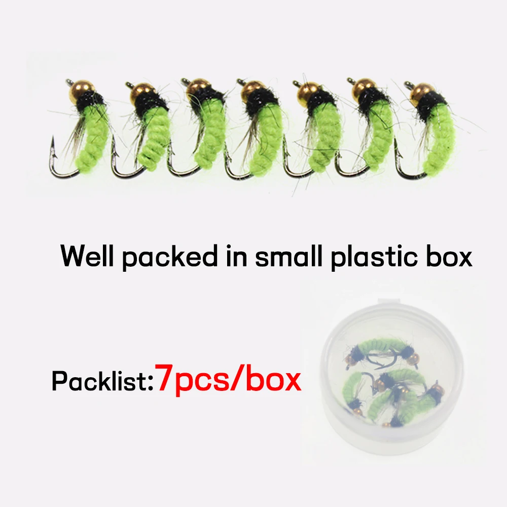Bimoo 7 Uds #12 trucha pesca moscas UV verde Scud Cezch mosca pesca ninfas señuelo cebo