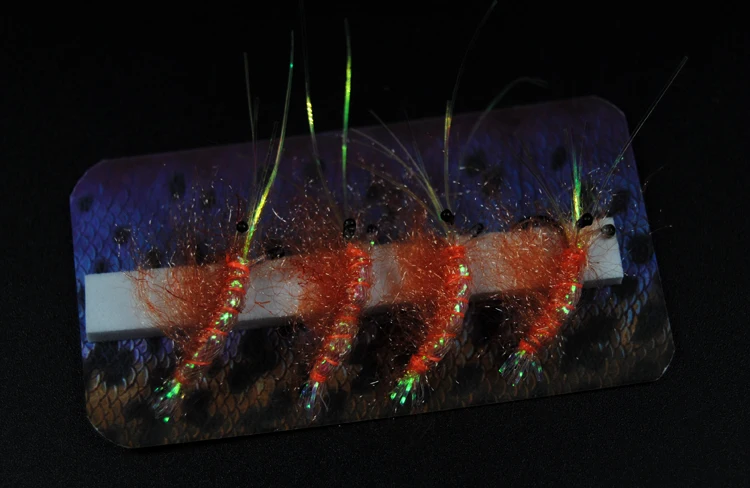Bimoo-señuelos artificiales de Camarón, cebo de pesca con mosca, Color naranja, 4 unidades, #6