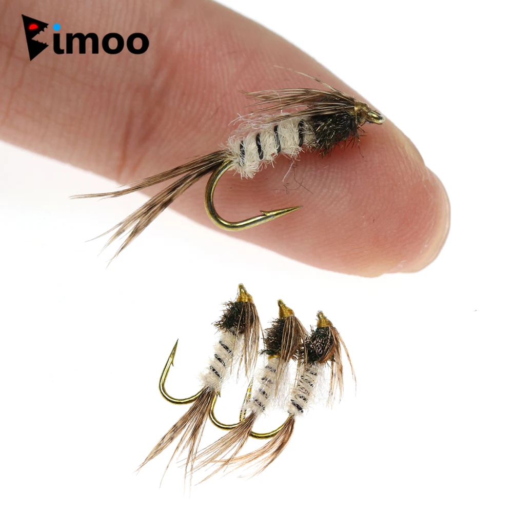 Bimoo 6PCS #12 Pluma de cola de faisán Mayfly Ninfas y emergentes Moscas secas Trucha Bass Pesca Señuelos con moscas Cebo artificial