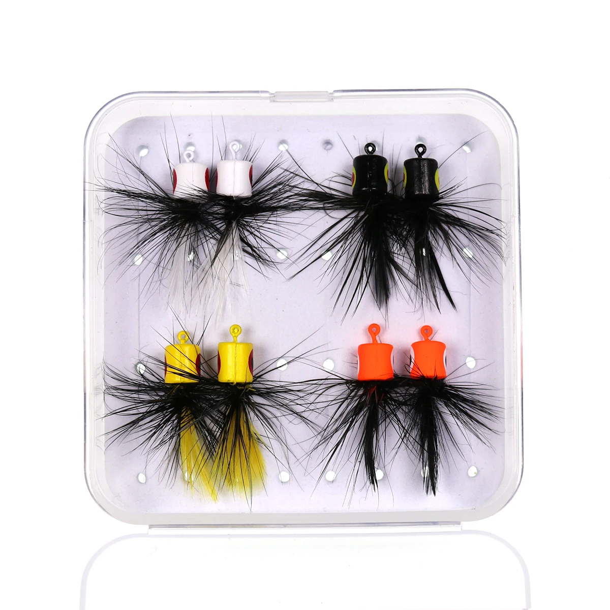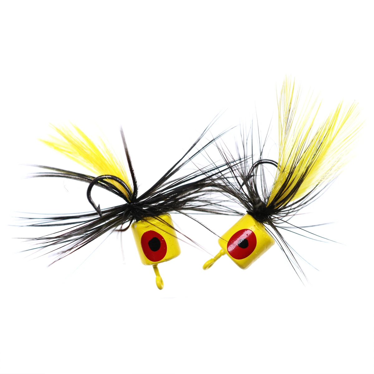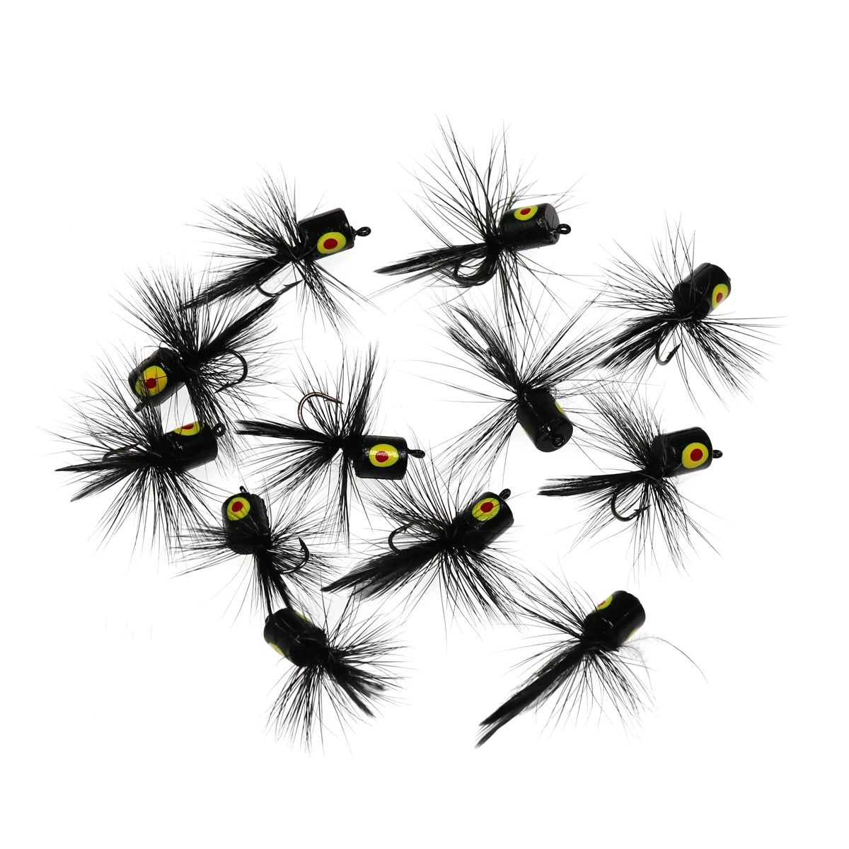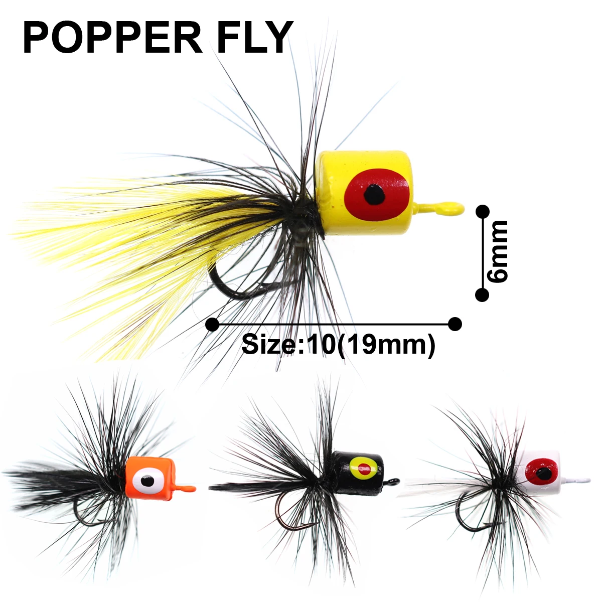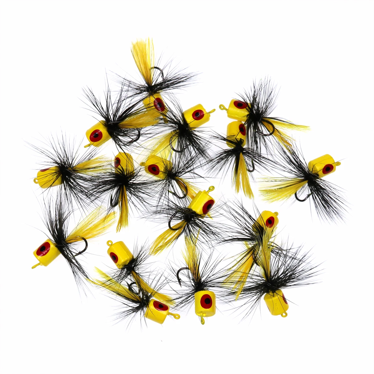 Tamaño Bimoo 8 piezas#10 lubina panfish popper mosca agua salada pesca truchas orilla Lucio moscas flotantes señuelos de espuma naranja amarillo negro