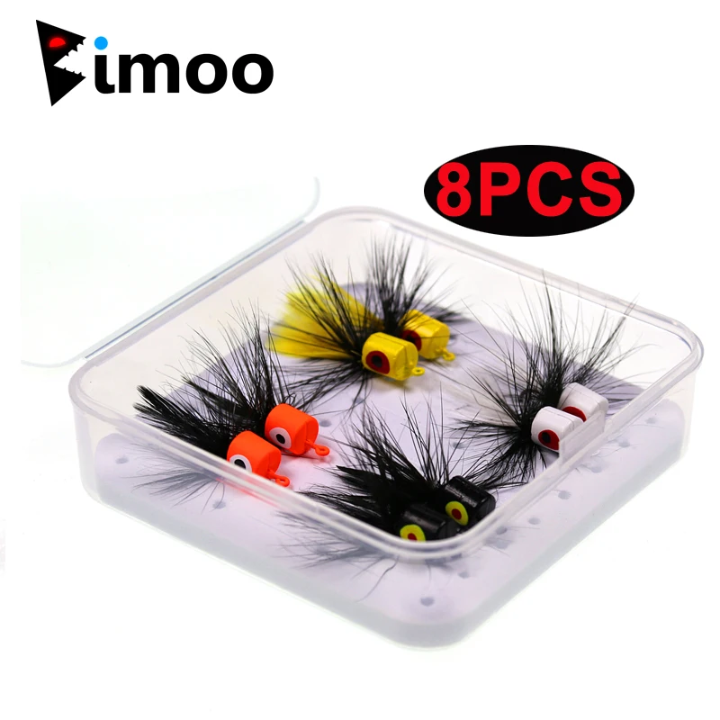 Tamaño Bimoo 8 piezas#10 lubina panfish popper mosca agua salada pesca truchas orilla Lucio moscas flotantes señuelos de espuma naranja amarillo negro