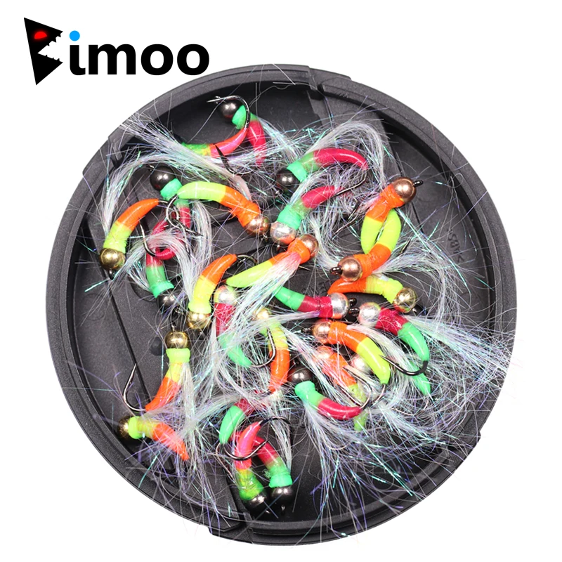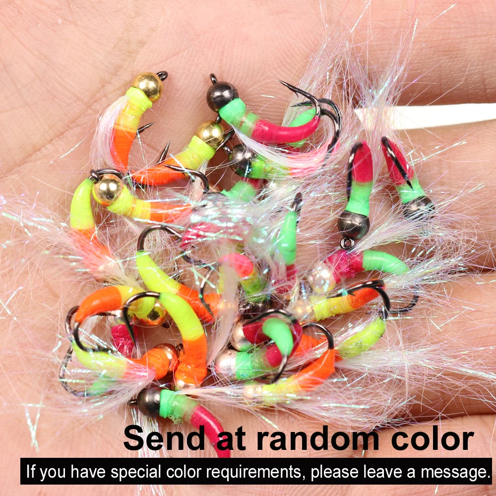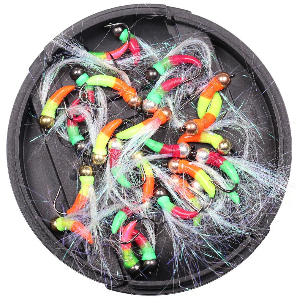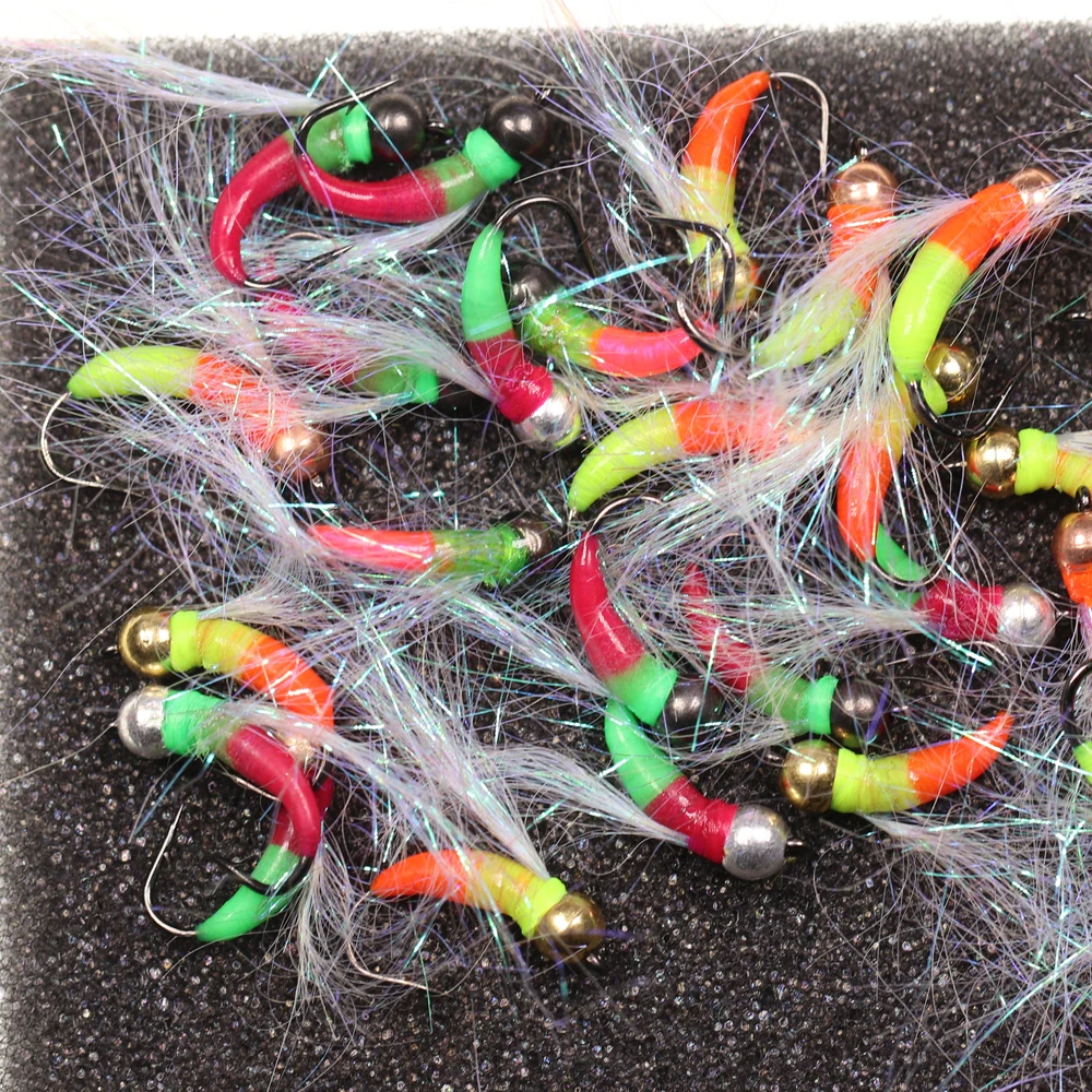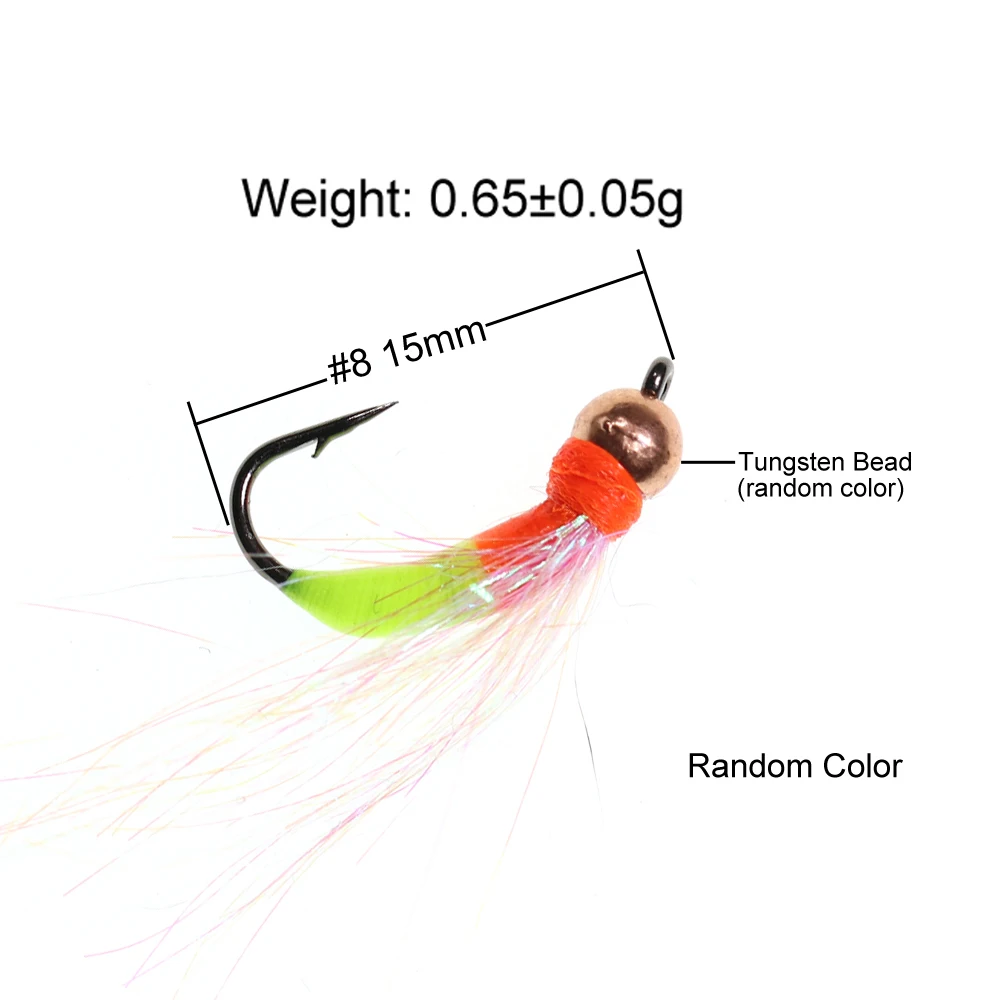 Bimoo-Señuelos de oropel Flashabou Fluorescente, perlas de Ninfa para pesca en hielo, perlas de tungsteno, Arco Iris, Arroyo, trucha, Greyling, Caddis, 6, #8, #8