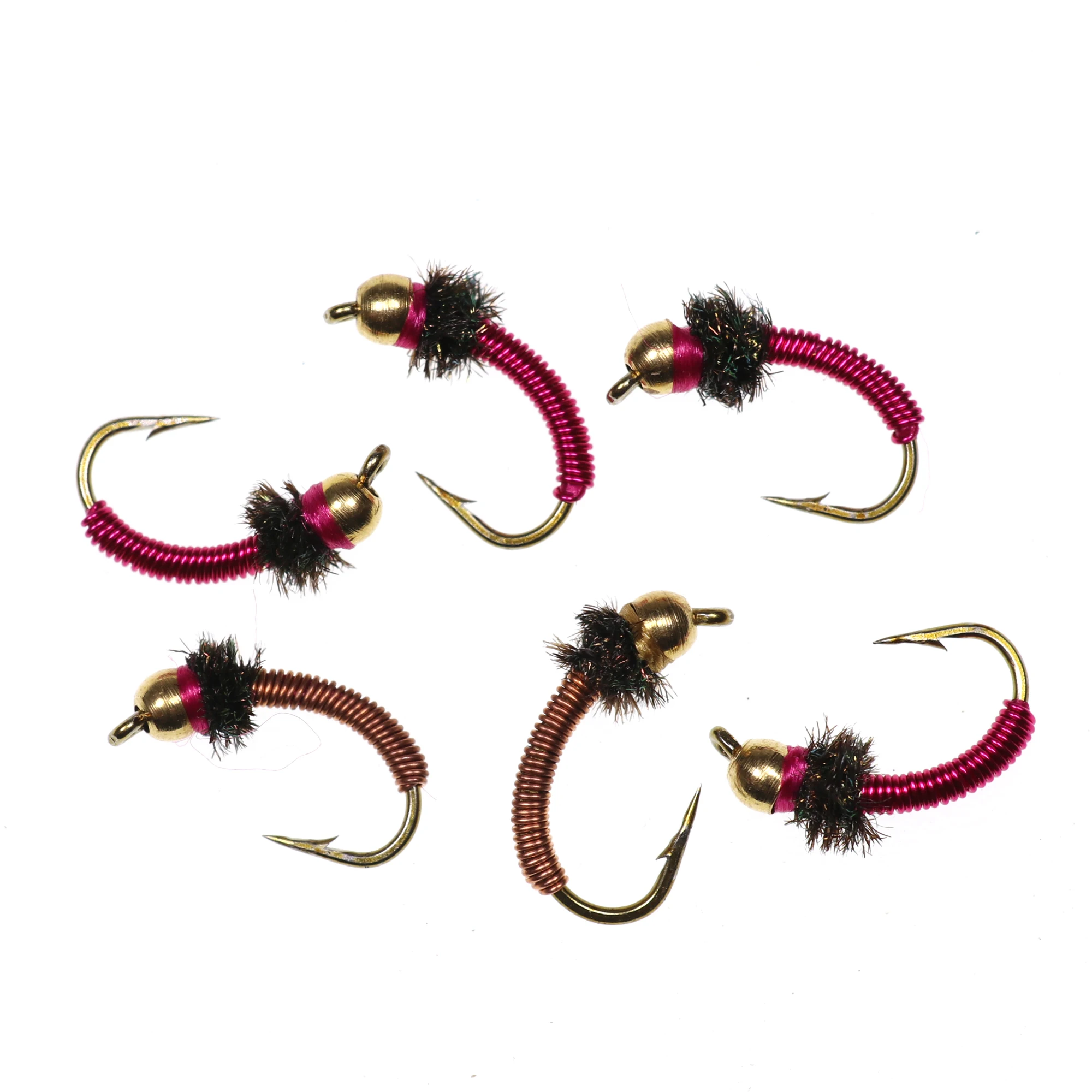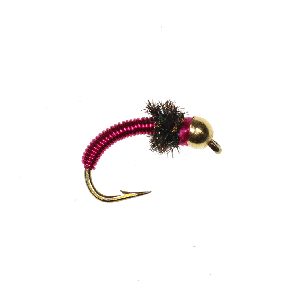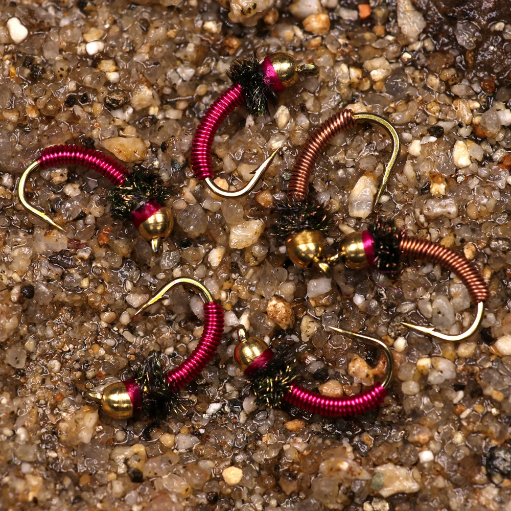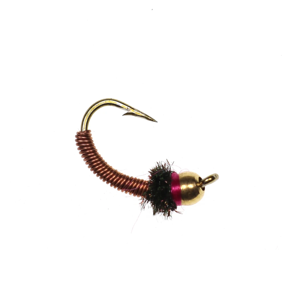 Bimoo 6 uds.#12 alambre de cobre rojo cabeza de cuentas de latón ninfa mosca trucha pesca con mosca alambre de colores moscas cebo de pesca en hielo señuelos hundidos