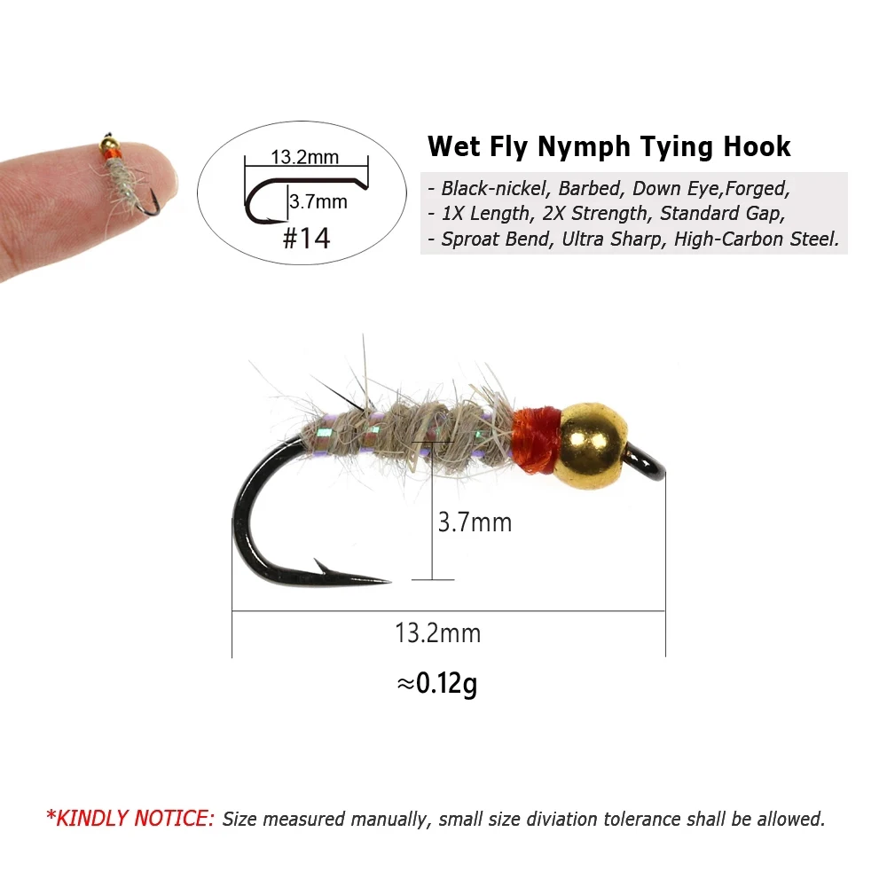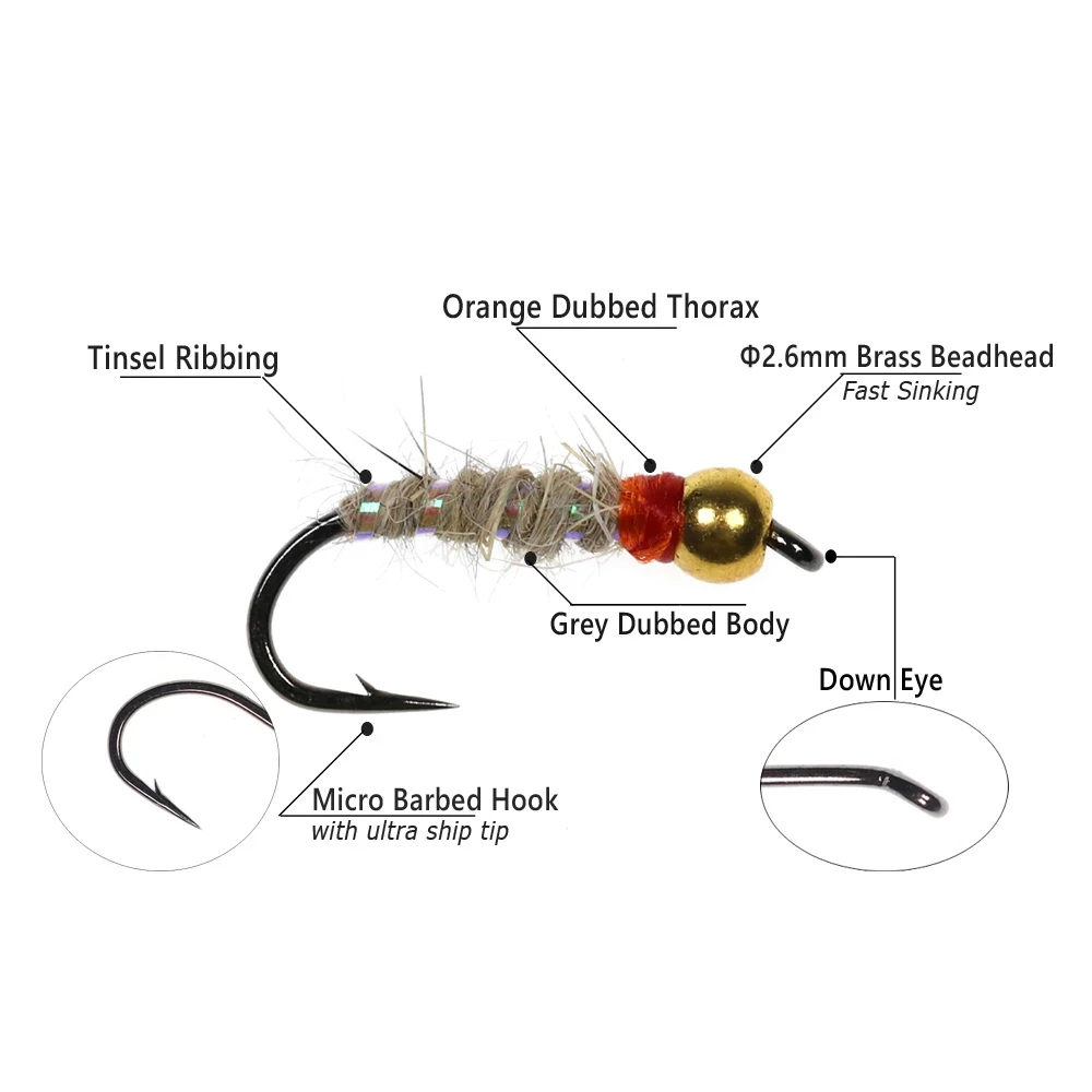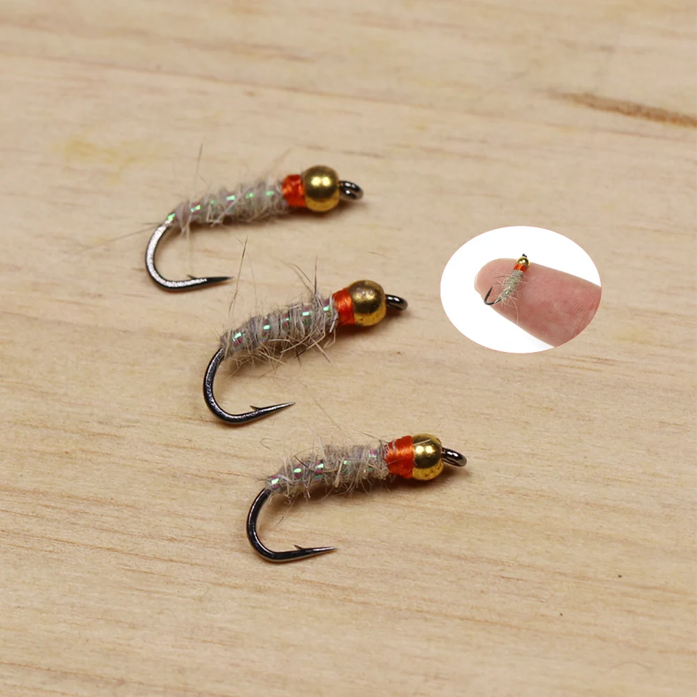 Bimoo 6PCS Brass Beadhead Walt’s Worm Nymph Fly Mayfly Larva Caddis Pupa Imitate Perch Trout Steelhead Fishing Flies Lures Bait