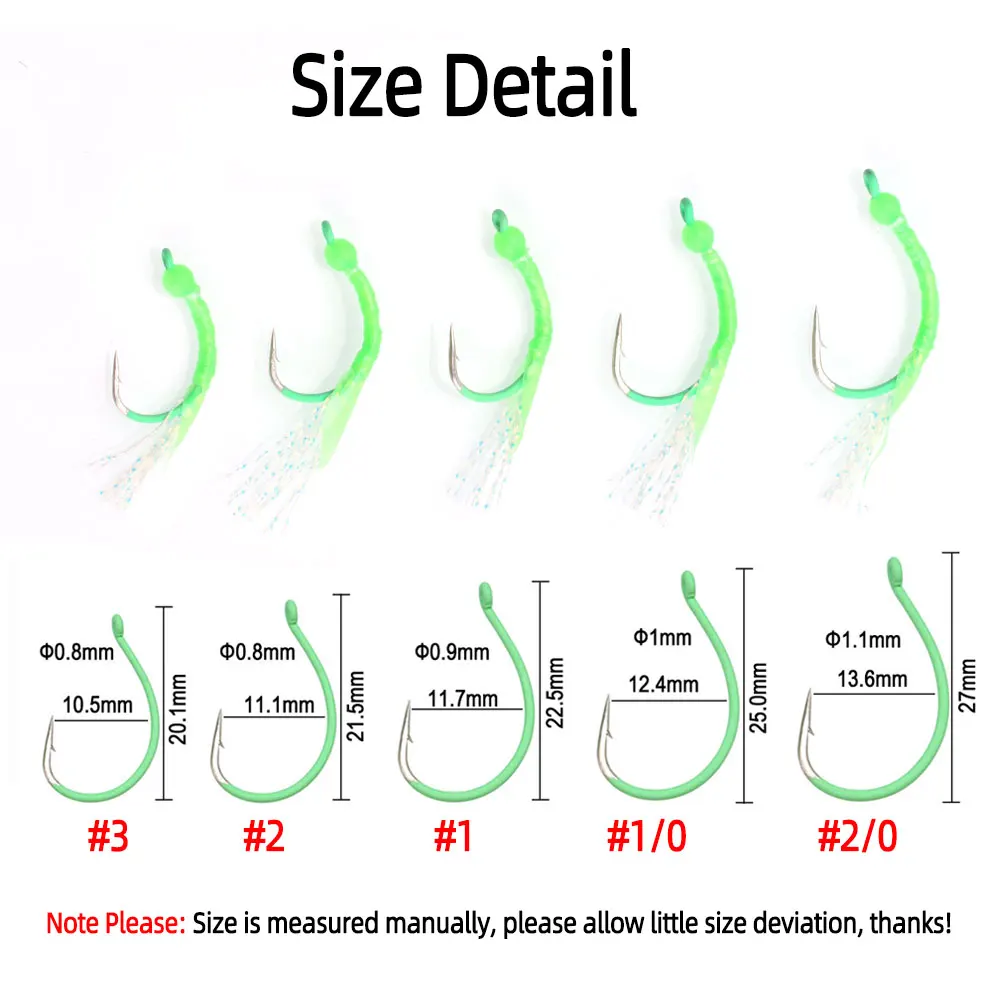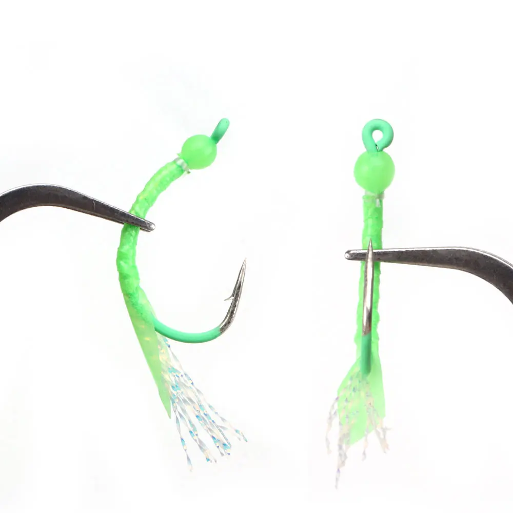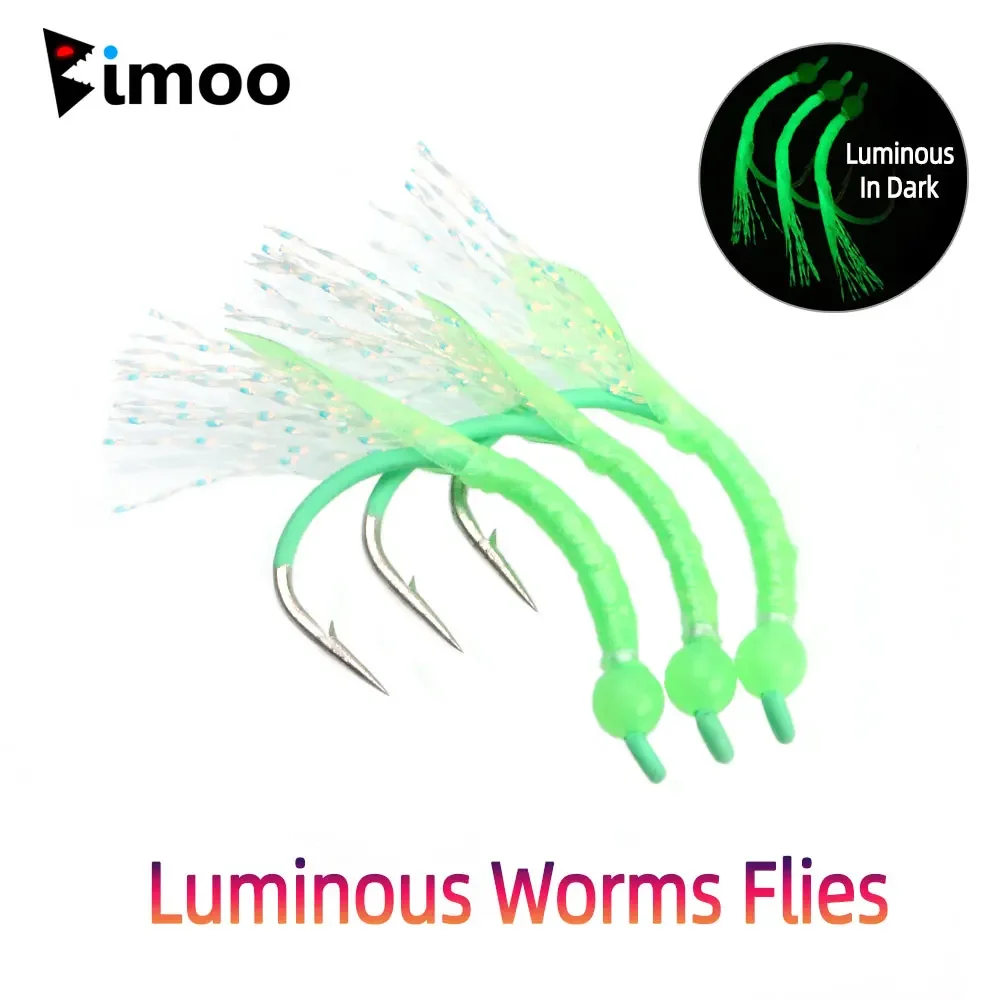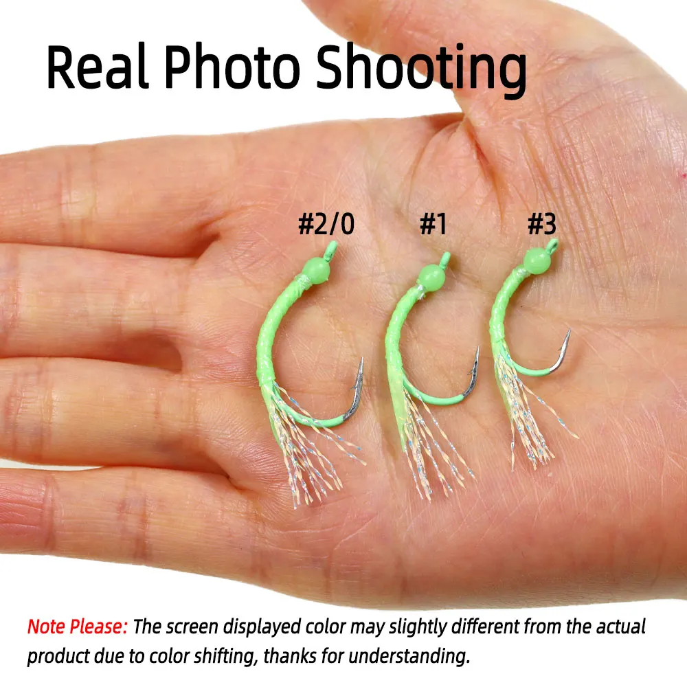 Bimoo Señuelos de Pesca de Mar, Moscas de Gusanos Luminosos con Cabeza de Cuenta de Gancho Extravagante que Brilla, 6, 1/0, 2/0, #3, #2, #1, #