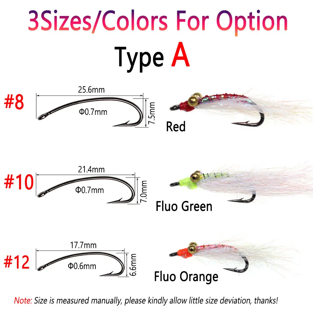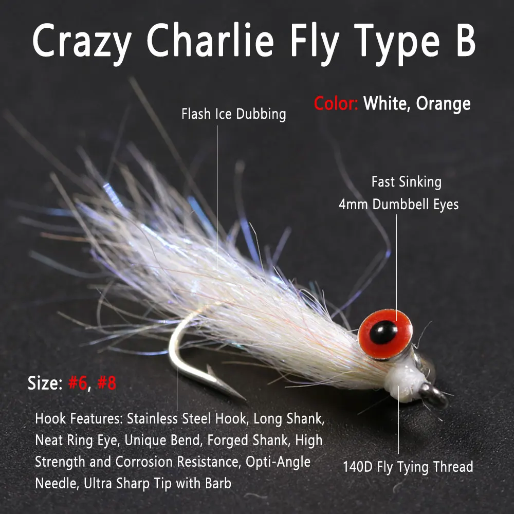 Bimoo Señuelos de Pesca de Agua Dulce y Salada, Ojos con Mancuernas, Crazy Charlie Fly, Fregadero Rápido, Bonefish, Tarpon, #6, #12, #6, #12