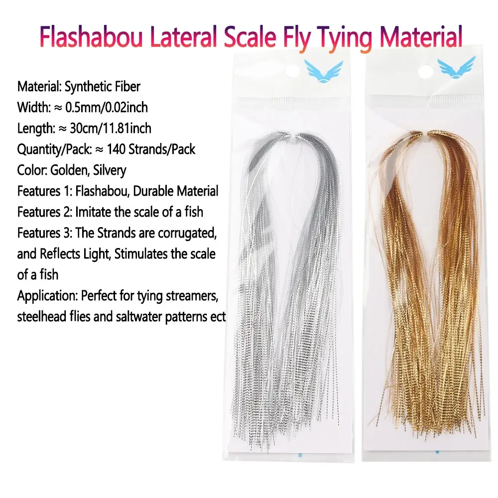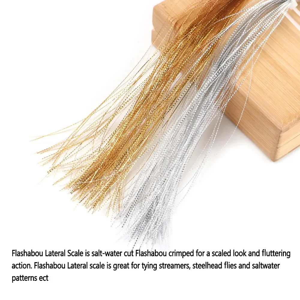 Flashabou Lateral Scale es un corte de agua salada Flashabou engarzado para un aspecto escalado y una acción de aleteo. La báscula lateral Flashabou es ideal para atar serpentinas, moscas Steelhead y patrones de agua salada, etc.