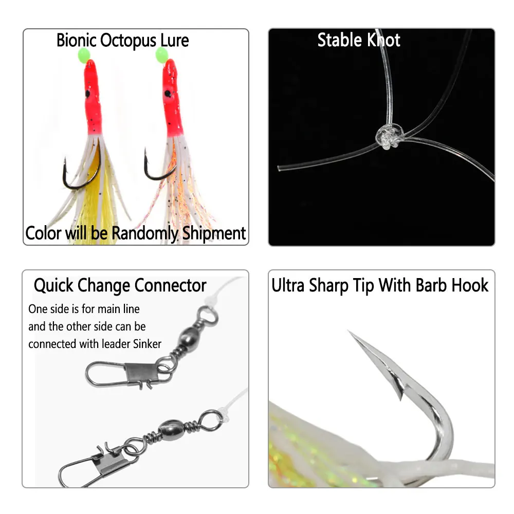 Bimoo-Aparejos de Pesca de Agua Salada, Señuelos de Peces de oropel de Flashabou Twisted Flashabou, Calamar, Caballa, 2 Paquetes=12, 2017
