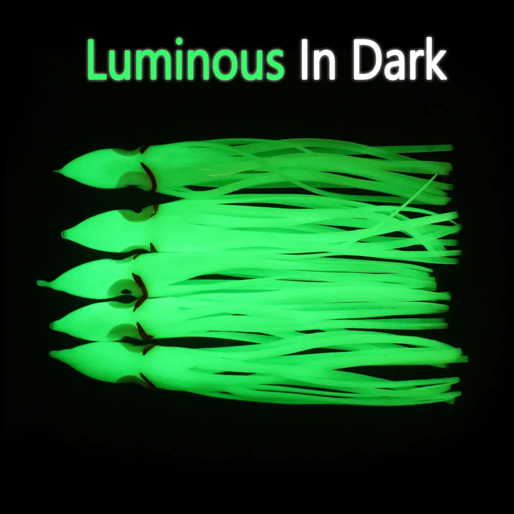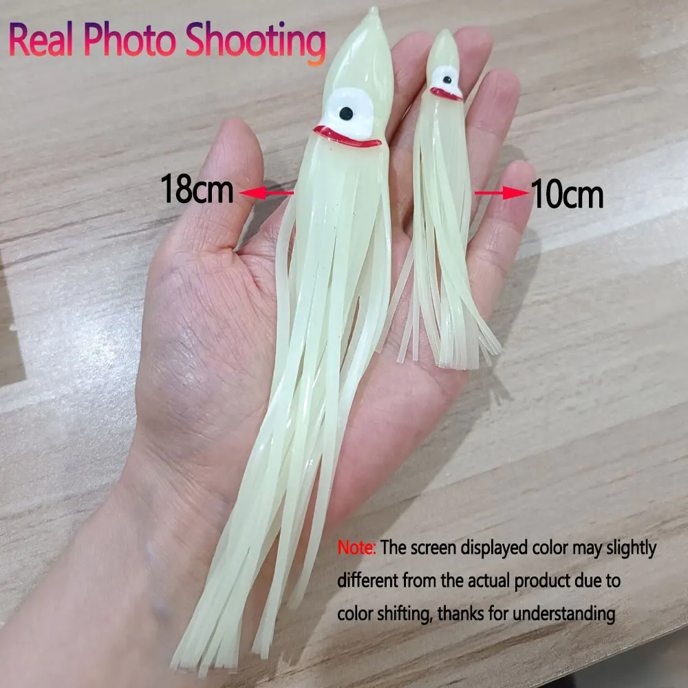 Bimoo-Faldas de calamar suaves luminosas, señuelos con cabeza de bombilla, calamares, falda de pulpo, cebos de pesca de agua salada, 5-, 10cm, 12cm, 15cm y 18cm