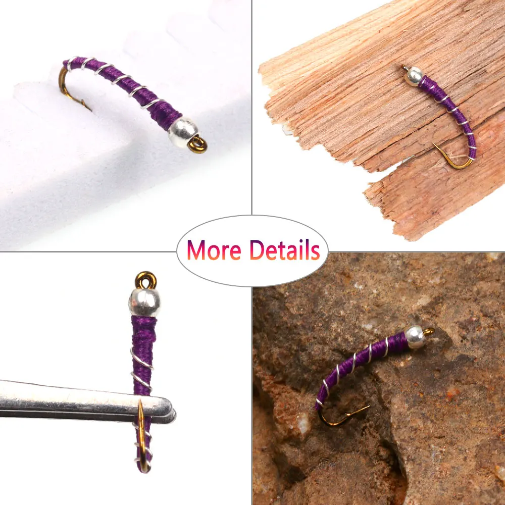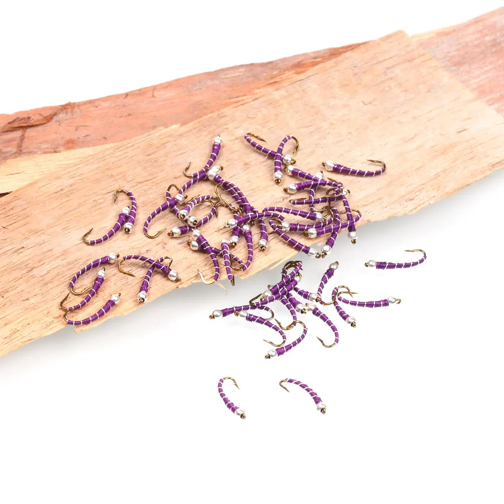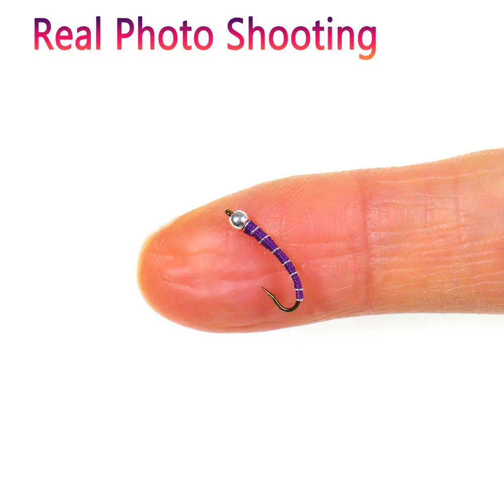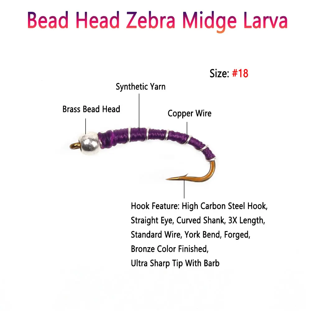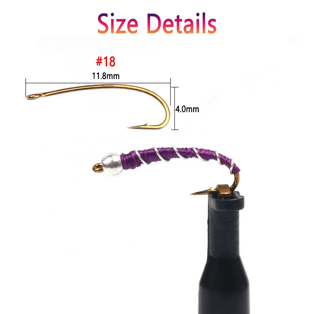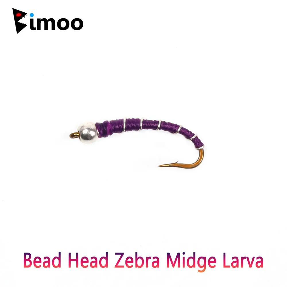 Bimoo-Cabeza de cuentas de latón, cebos de cebo de pesca, cebra, Midge, larva, gusanos artificiales curvos, trucha, percha, 6, #18