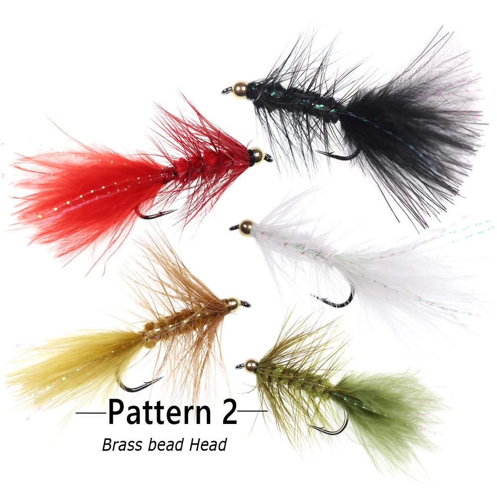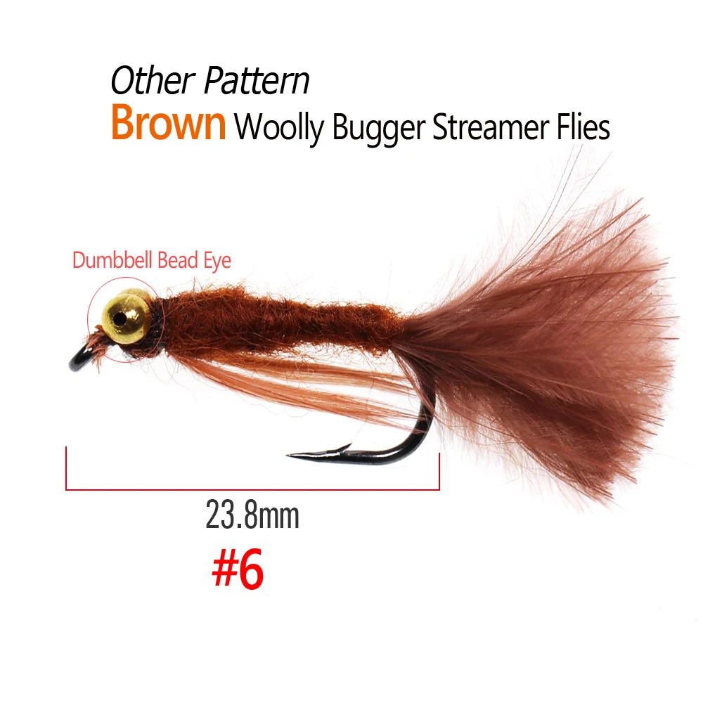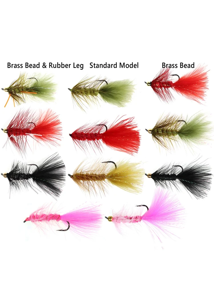 Bimoo 6 piezas cabeza de latón Woolly Bugger Streamers Fly pesca vuela para Bass lucio trucha arco iris pesca señuelos cebo rojo Oliva negro