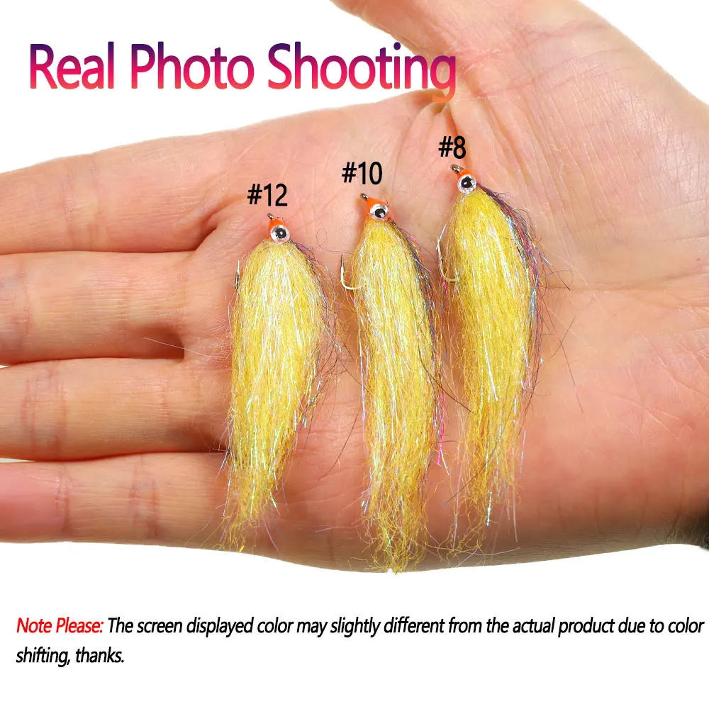 Bimoo Señuelos de Pesca de Fibra Sedosa, Señuelos de Pesca de Pececillo Heridos, Cebos de Pez, Mosca, Lubina, Salmón, Lubina, Trucha, Lubina, 6