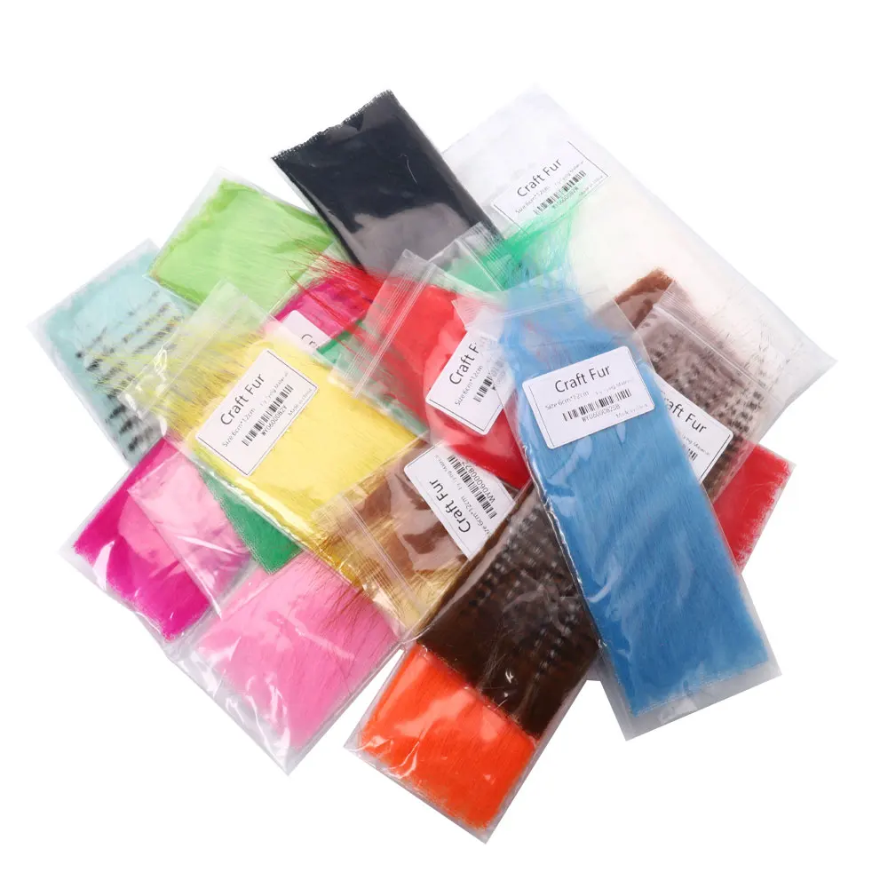 Bimoo 14 paquetes mezcla 12X6cm largo peludo Artificial mano artesanía piel fibra sintética Streamer trucha Señuelos de Pesca Material de atado de moscas