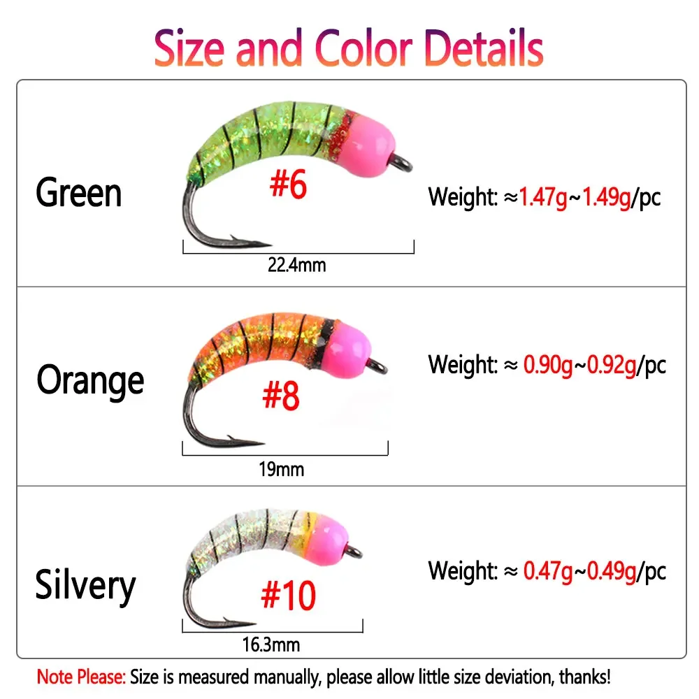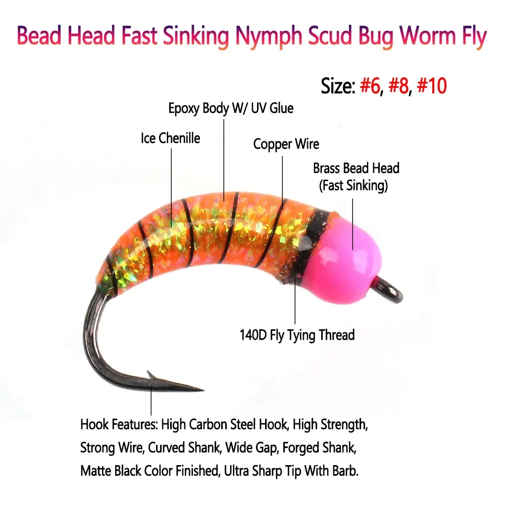 Fluorescent Bead Head Fast Sinking Nymph Scud Bug Worm Fly
