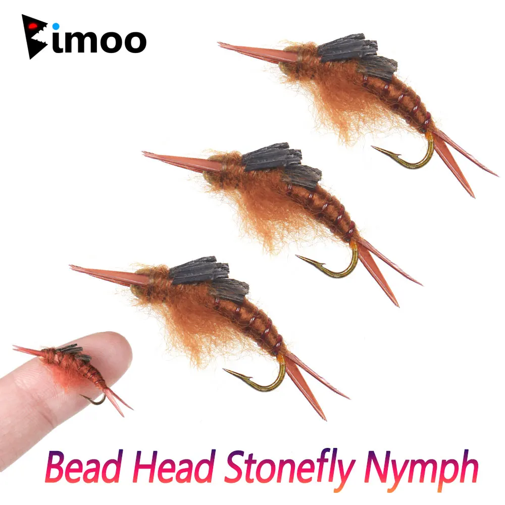 Bimoo #12 #14 #16 6 piezas cabeza de cuenta de latón Stonefly Nymph Color marrón para trucha Bass bluewear Perch Steelhead cebos de pesca