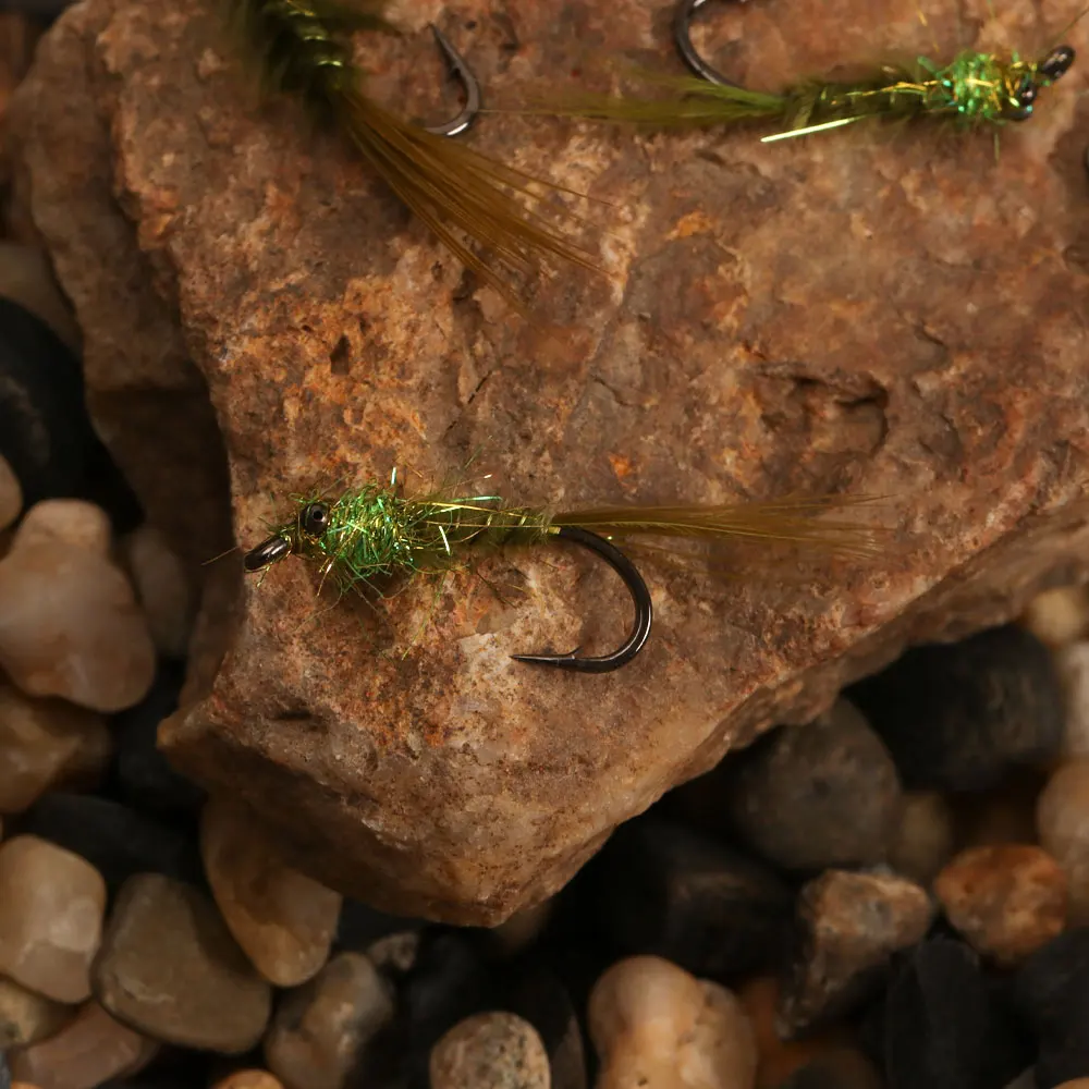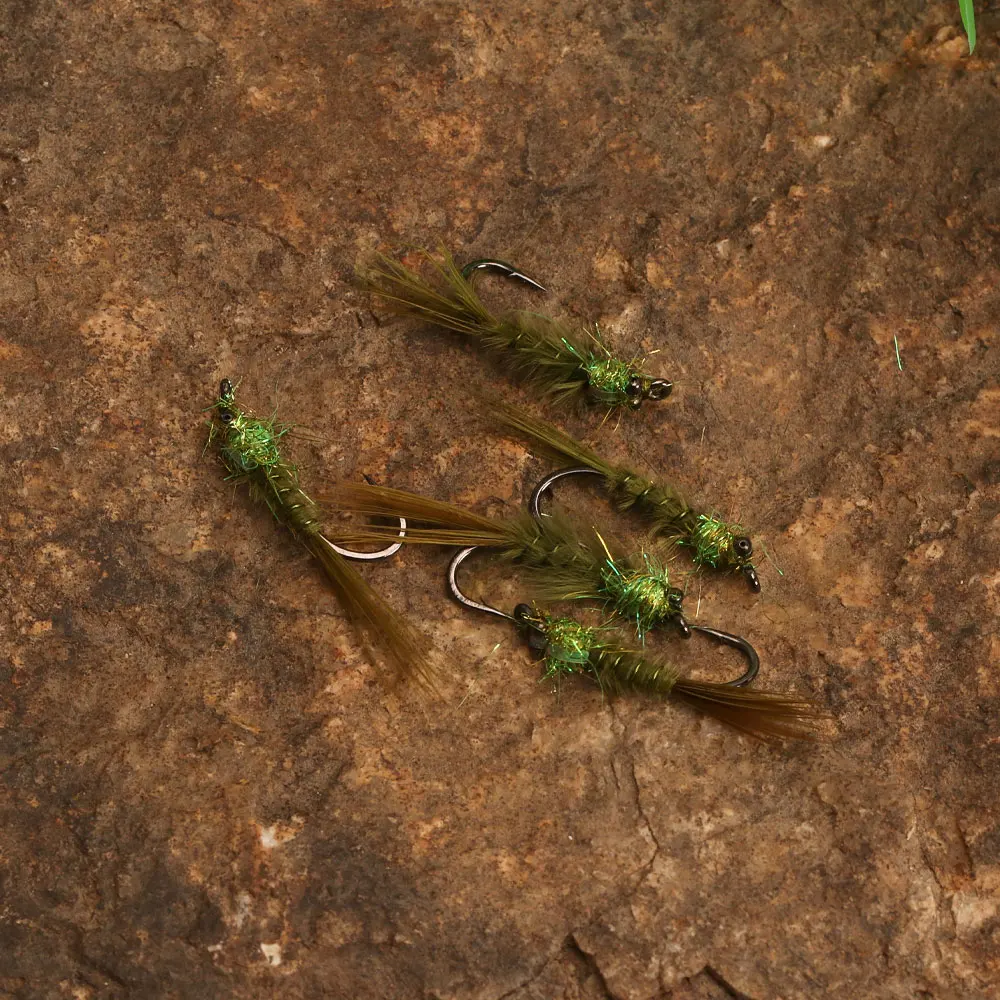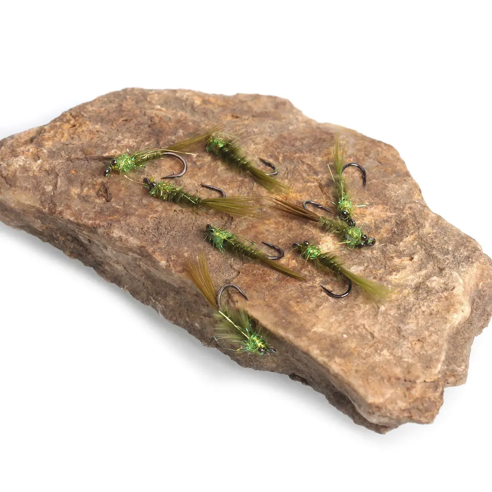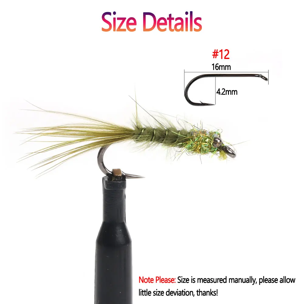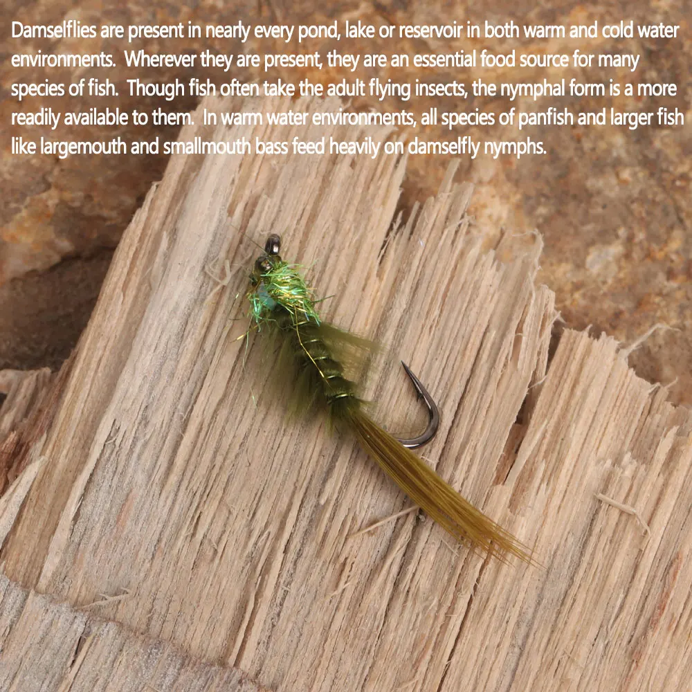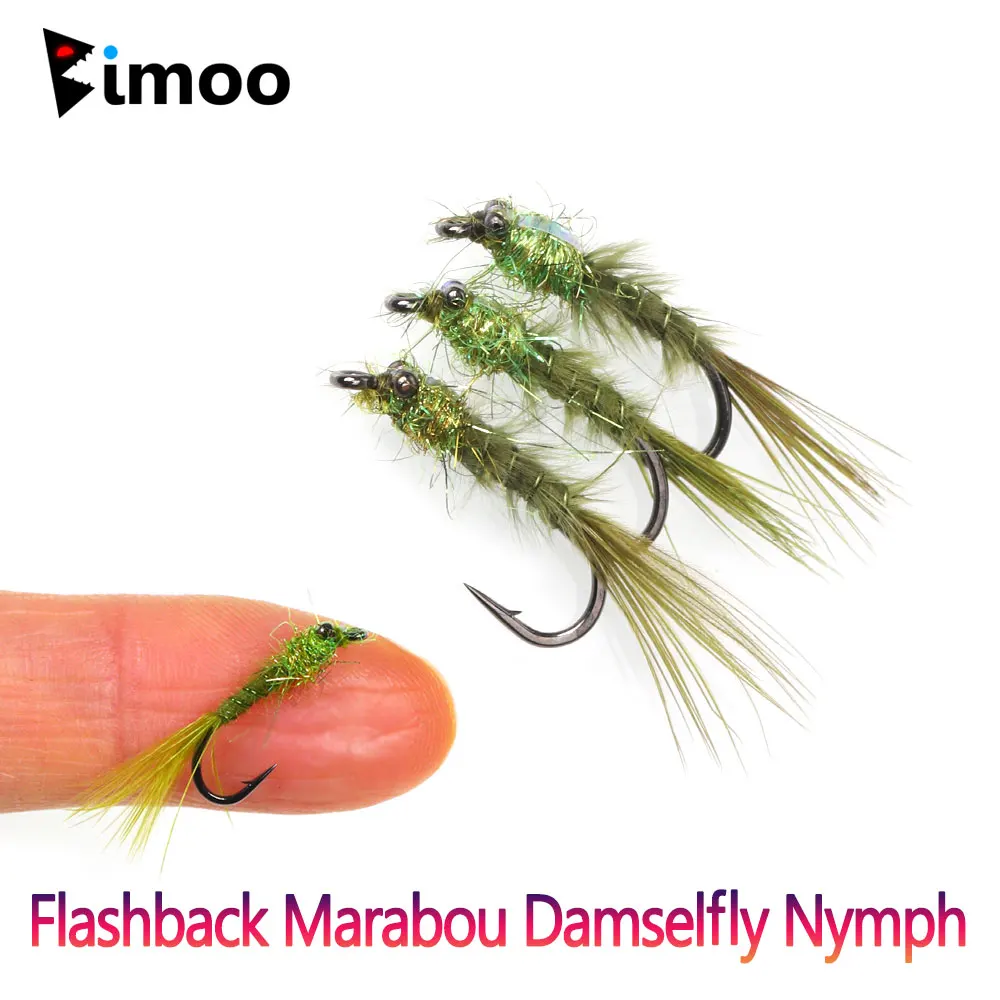 Bimoo-Señuelos de pesca de lubina, cebos con ojeras de cadena Flashback Marabou Damselfly Nymph Olive Hackle Nymphs para Panfish
