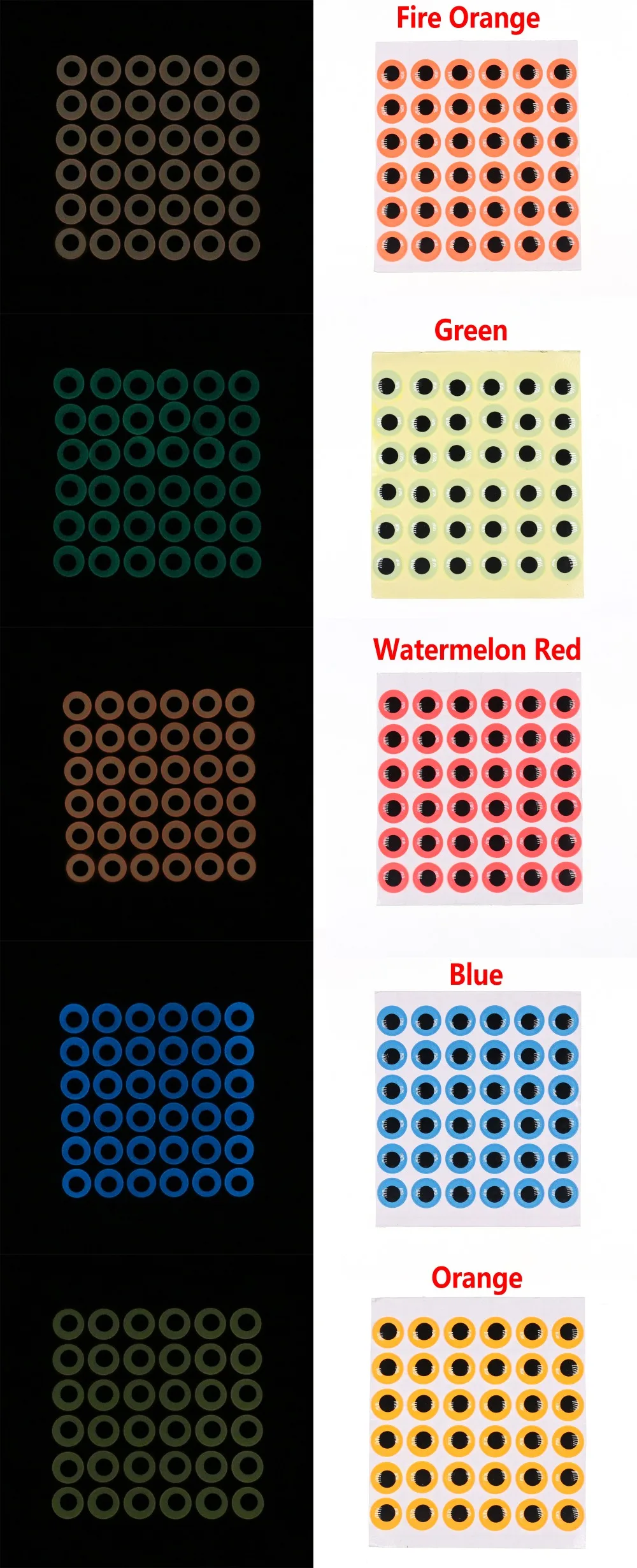 Brillando en la oscuridad ojos de pez 3D con pegamento de respaldo;