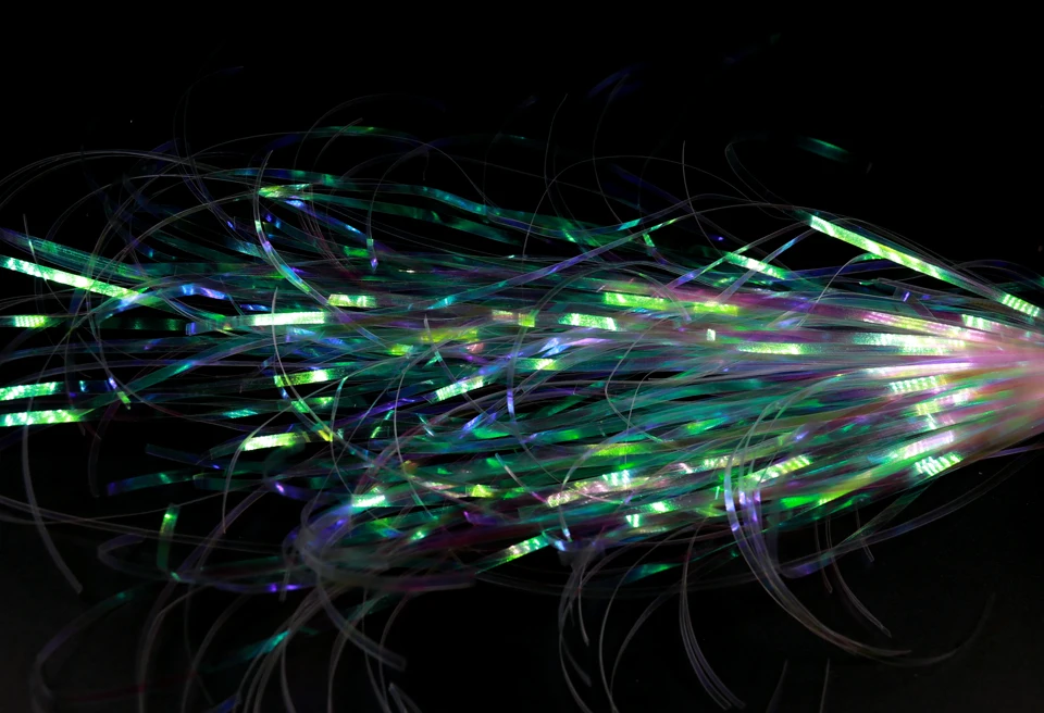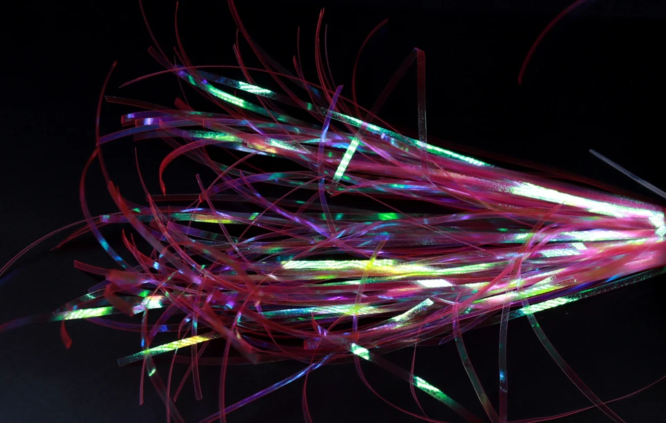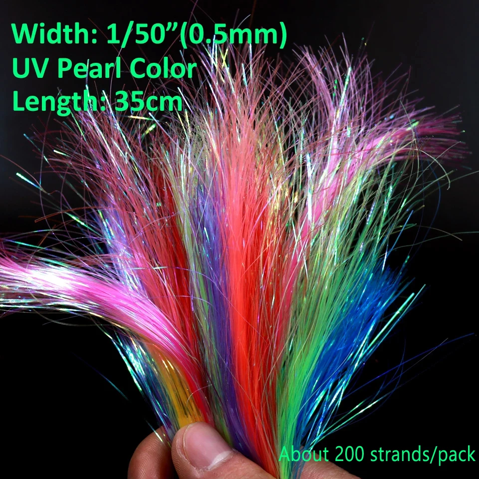 Bimoo 2mm 0,5mm de ancho UV perla ala de hielo Flashabou oropel atado de moscas materiales para Ninfa Streamer Pike Steelhead Señuelos de Pesca de Mar