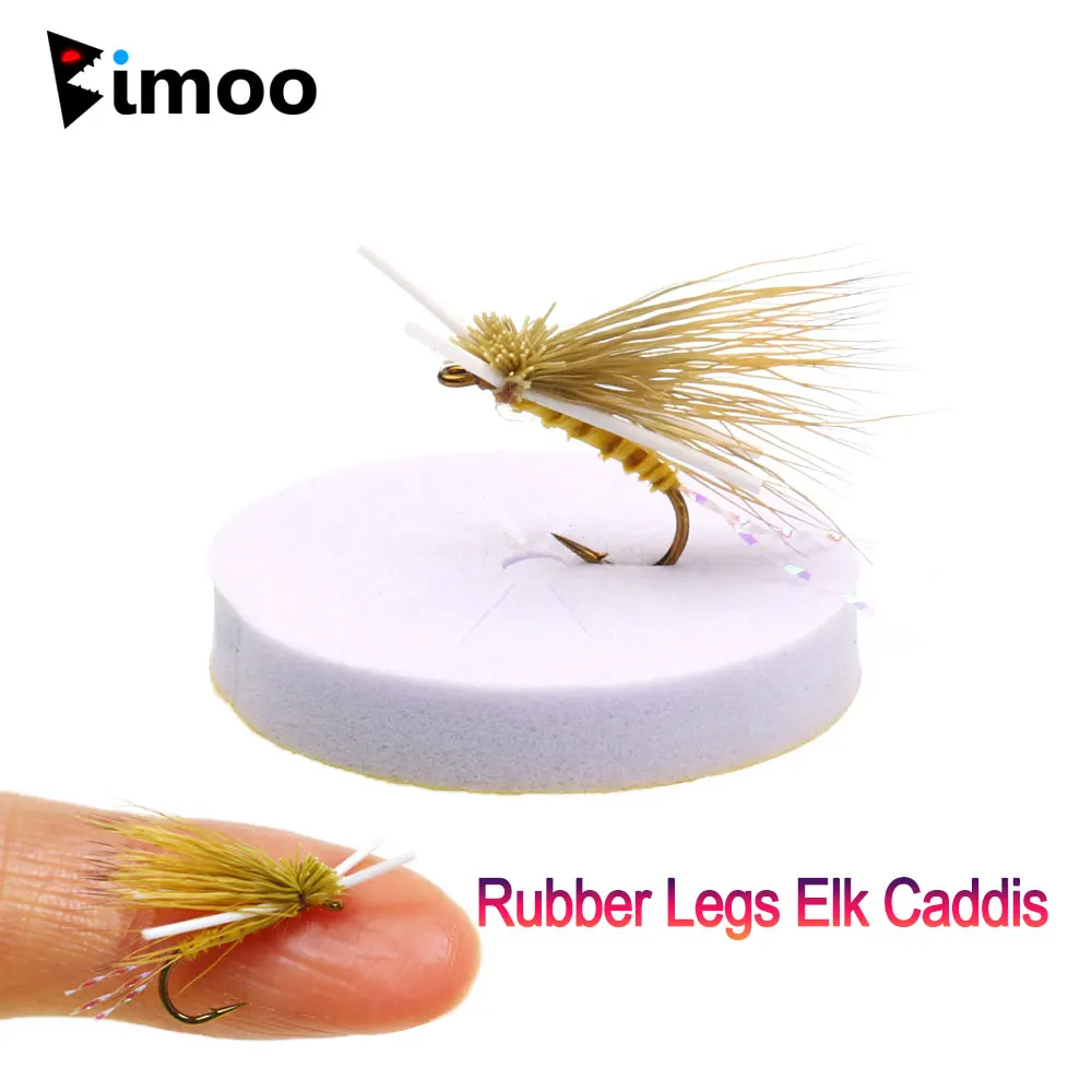 Bimoo 8PCS#12#14 patas de goma pelo de alce Caddis mosca seca mosca flotante con anzuelo de mosca seca con púas percha de trucha Bluegill Señuelos de pesca cebos