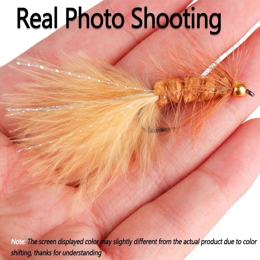 Bimoo 5 uds #6 cabeza de cuentas de latón Bugger lanudo hundimiento rápido marabú pluma cola Streamer Fly Steelhead trucha Señuelos de Pesca cebos