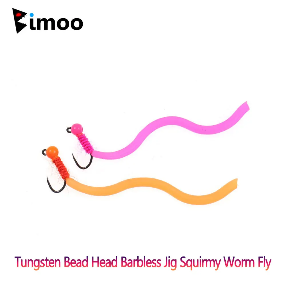 Cabeza de cuentas de tungsteno Barbless Jig Squirmy Worm Fly