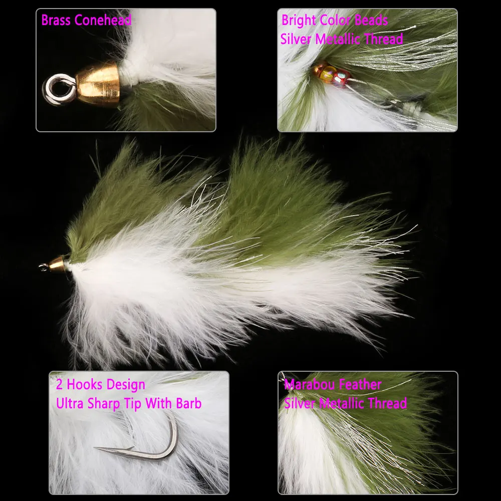 Bimoo, 1 pieza, cabeza de cono de latón, serpentina articulada para peces, espina, Mosca, gran juego, peces, pesca de agua salada, Lucio, lubina, trucha, Señuelos de Pesca